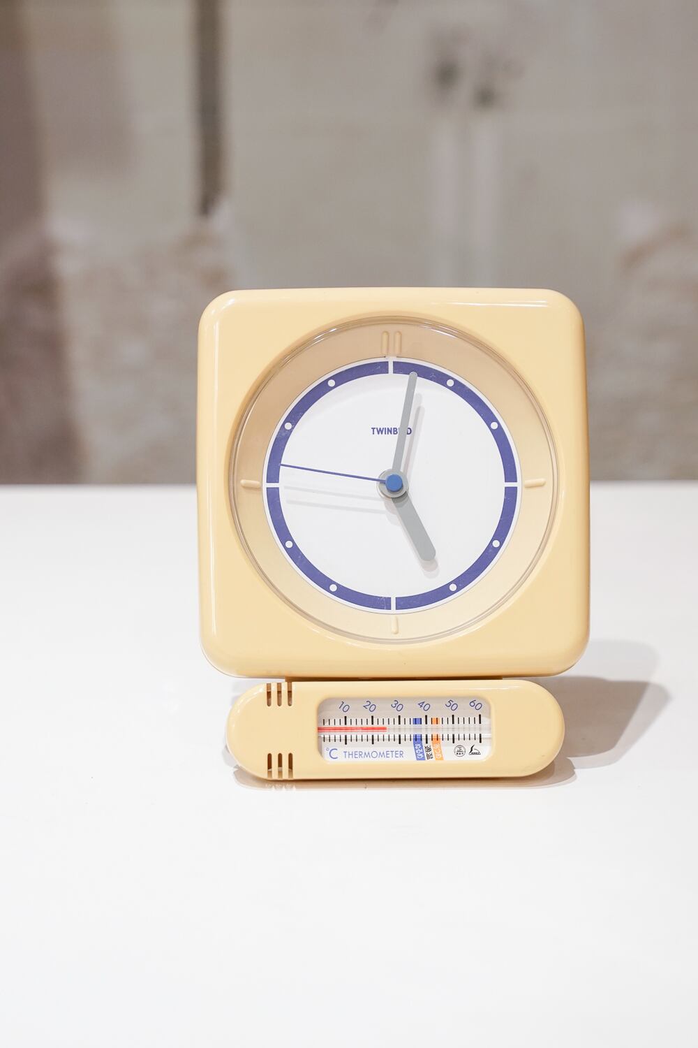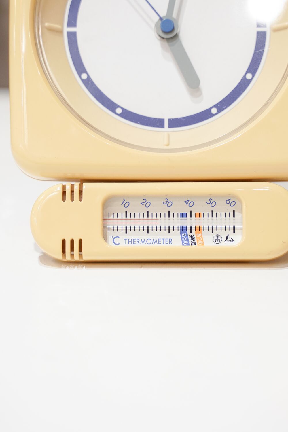 時計の下に付いている温度計は気温を測るものではなく、お湯の温度を測る温度計のようで、取り外しができます。