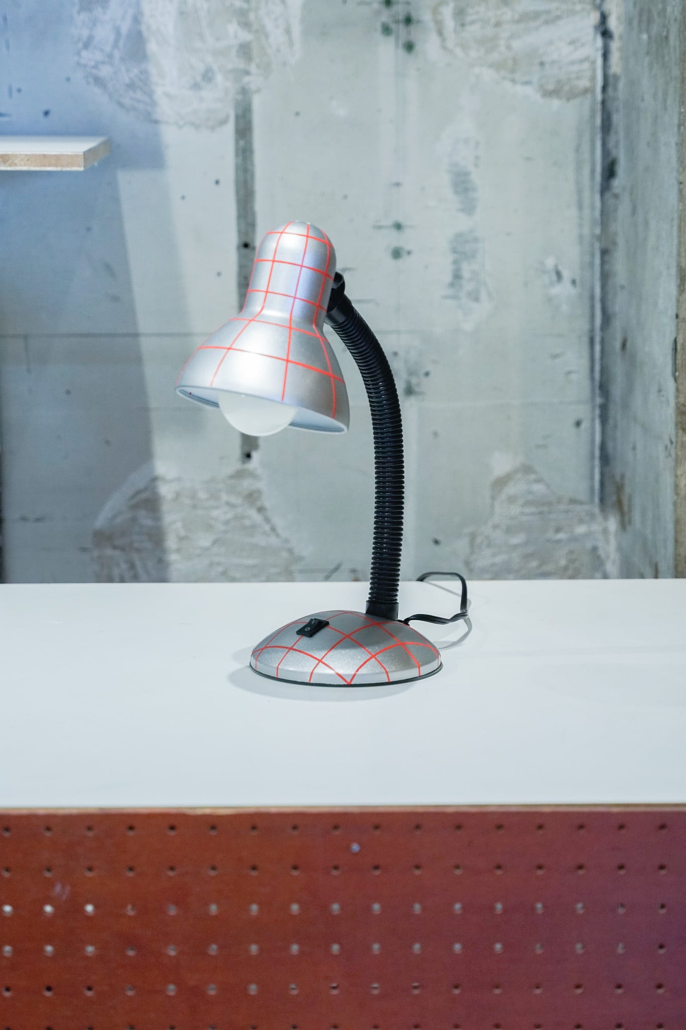 似た塗装のシルバーシンプルランプにチェック柄を施してみました。