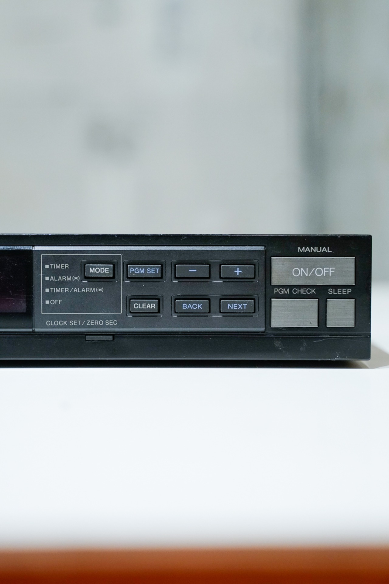 9PROGRAMS WEEKLYと記されたデジタル時計。ボタンを触るだけで、色々な機能がありそうなことだけは分かります。