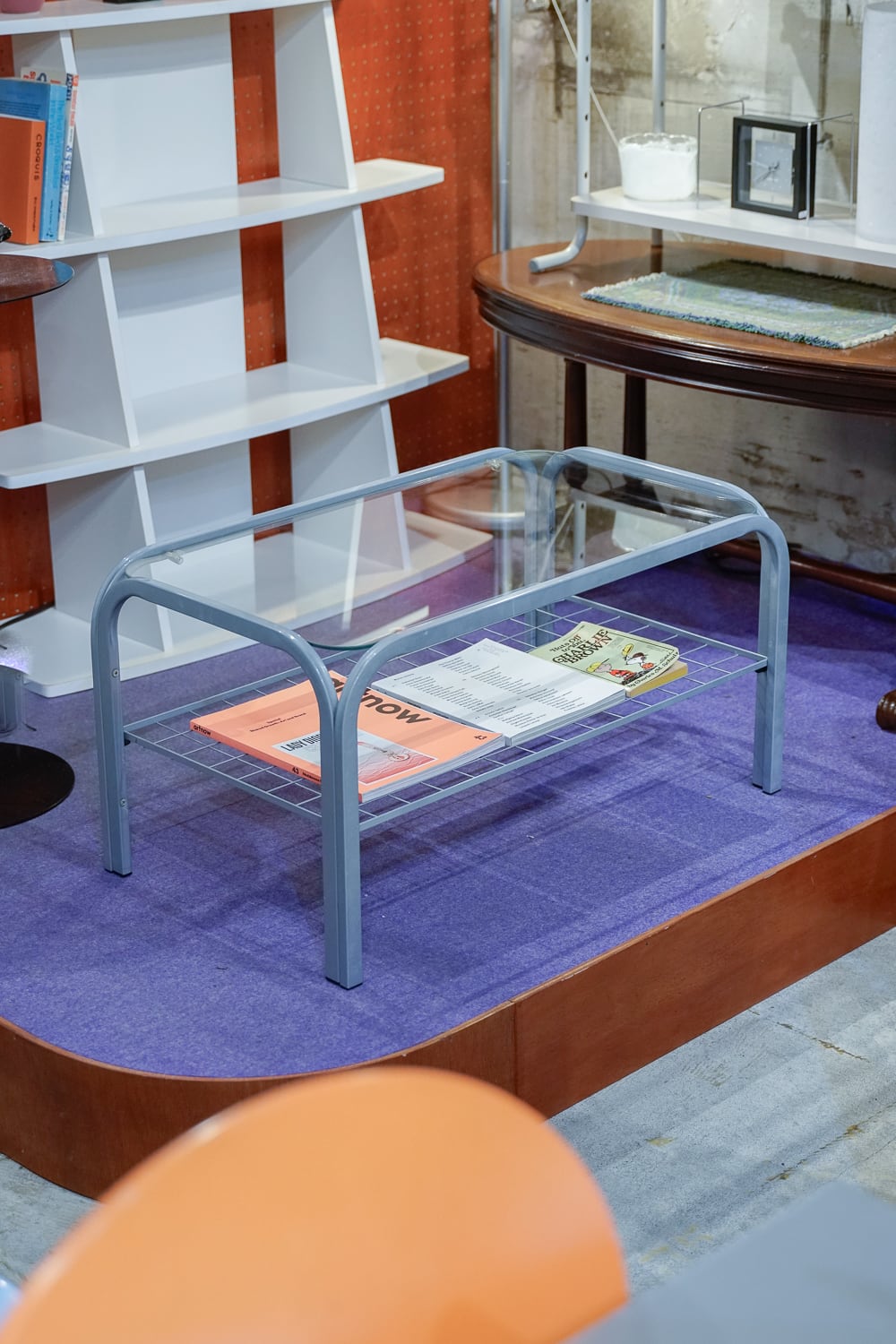 下段に網棚があるの、地味に嬉しいです。ガラステーブルなので、あみあみに好きなものを飾っていつでも眺められるの、いいですよね。