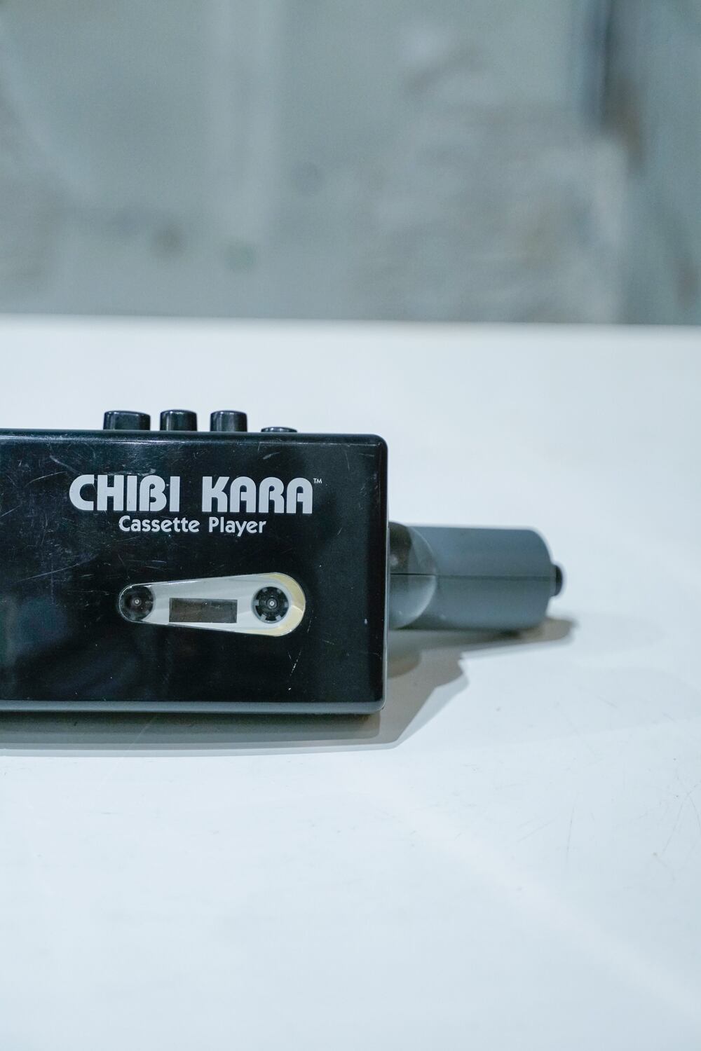 ちびカラは、マイクが内蔵されていて、カラオケ練習用のカセットテープを流すと、お好みで人物の声を消してカラオケ練習ができるというシステム。地味にすげ〜