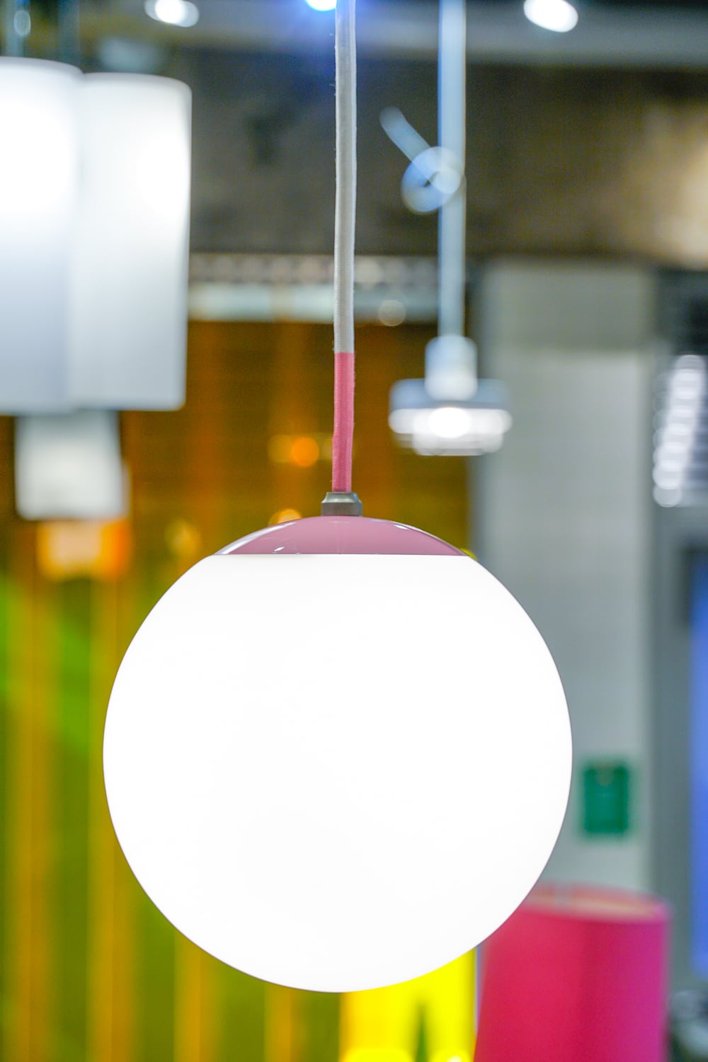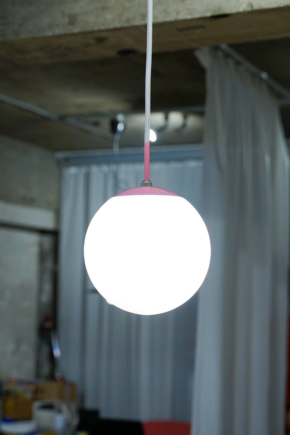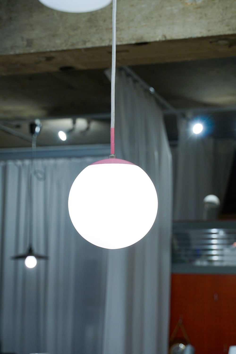 ピンクがアクセントのシンプルな球体照明です。
