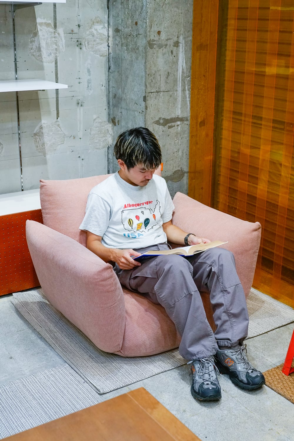床に直に置くタイプ、座面が低い分ずっしりかなりくつろげます。
