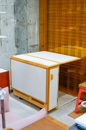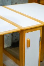 図工室とか家庭科室にありそうな雰囲気。なんだろう、この配色と木の素材感がそうさせるのかな。