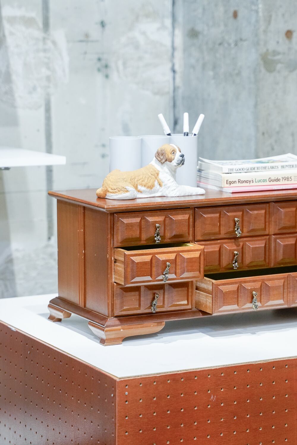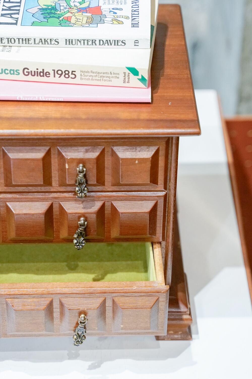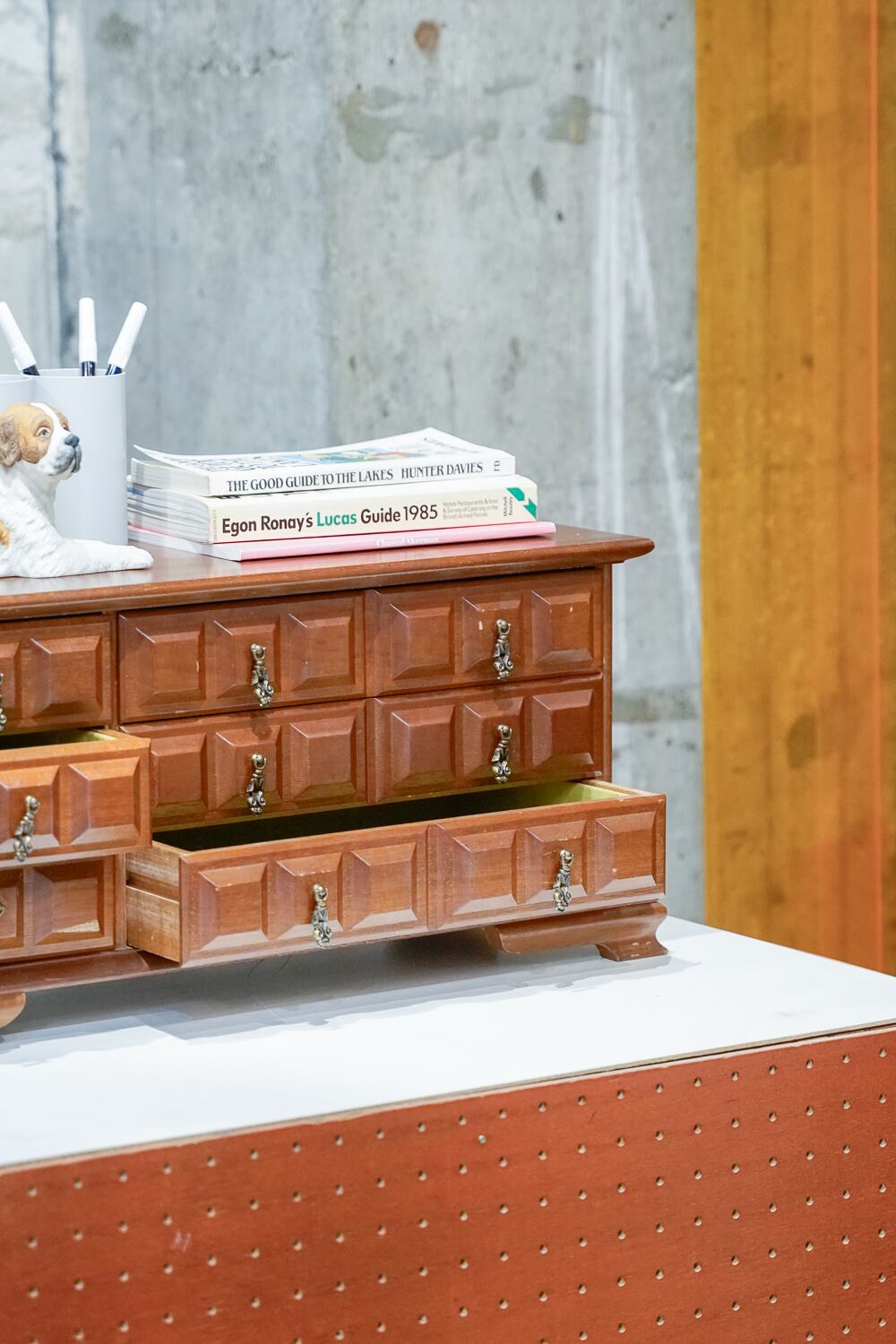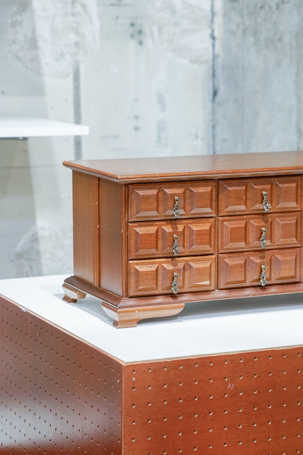 板チョコみたいな建築みたいな、両手で持てるサイズ感の引き出しです。つまみは1段に3つ付いていますが、引き出せるのは1段につき2箱です。説明難しい!!