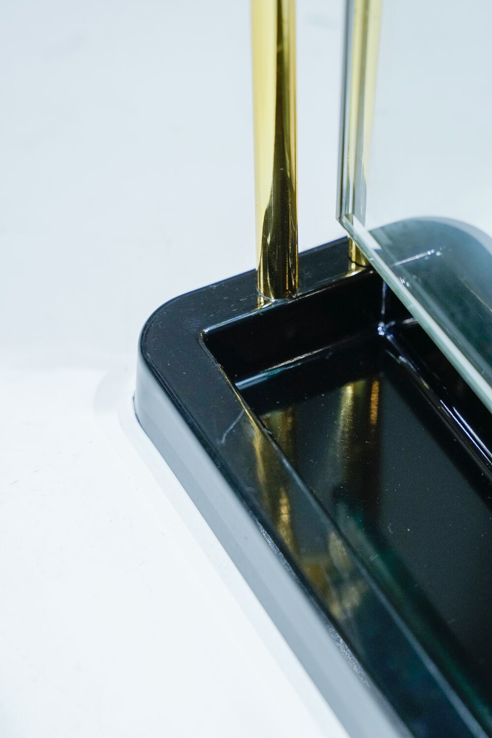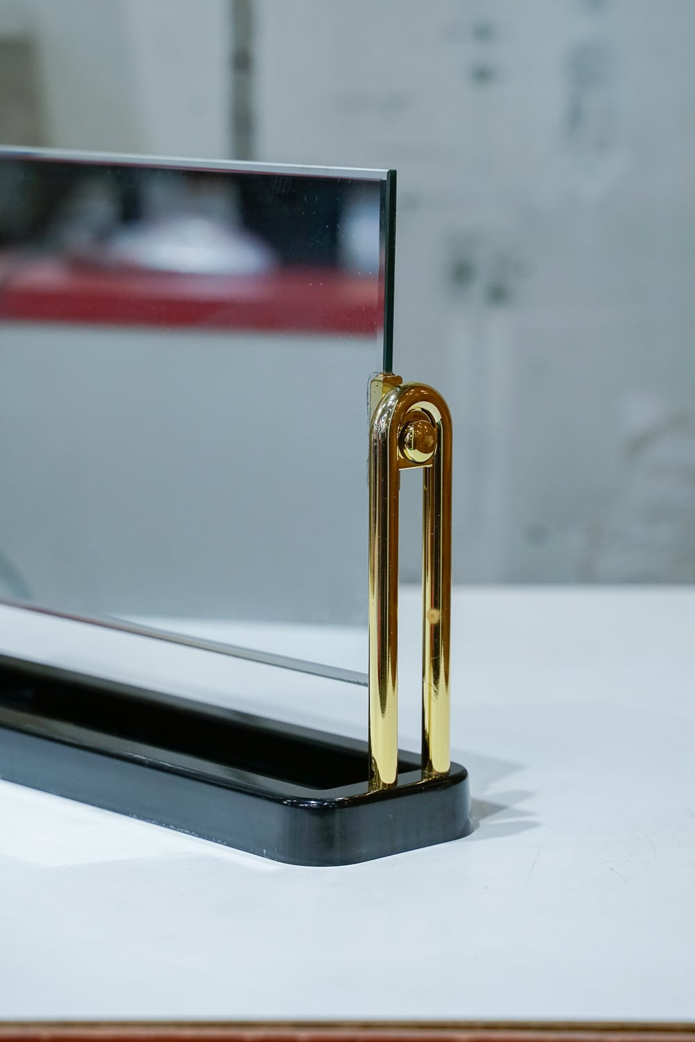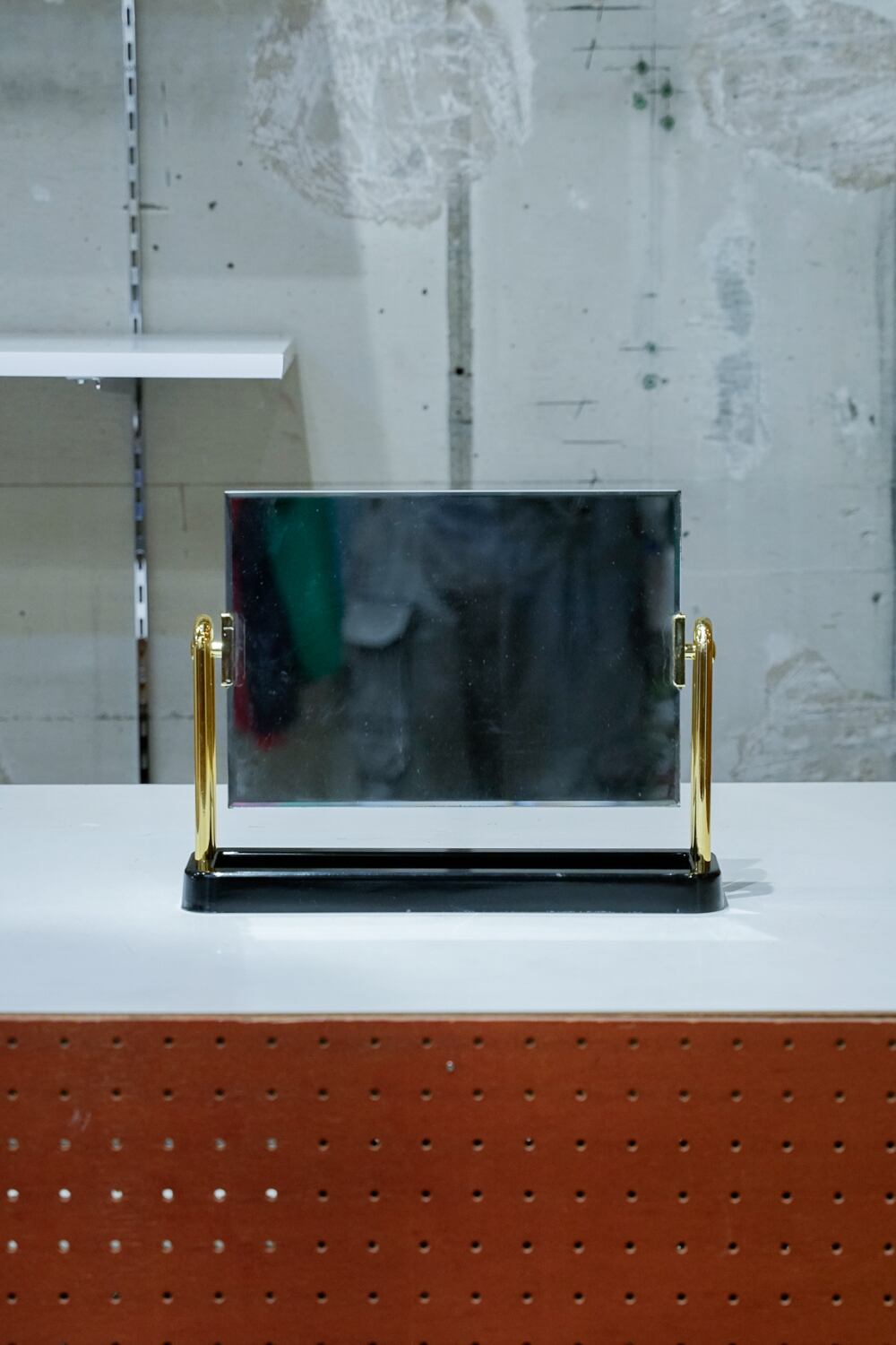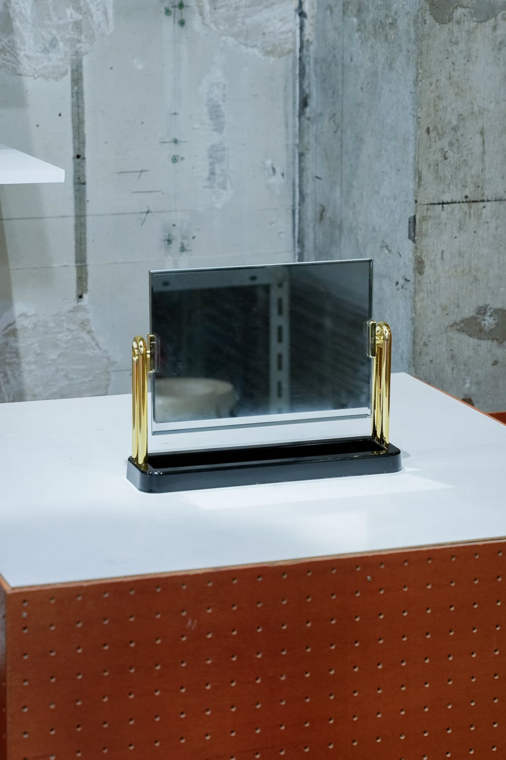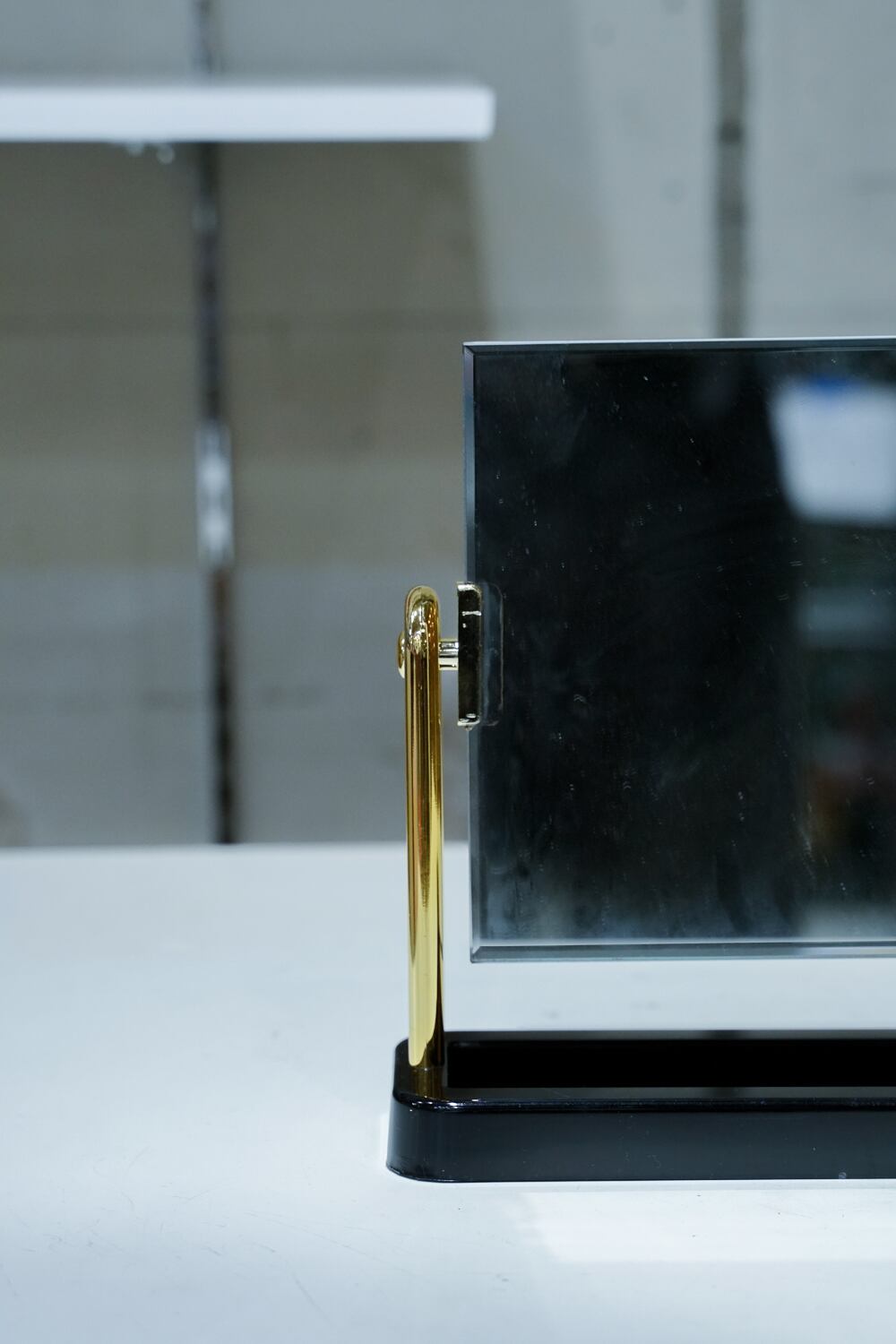 トレー部分、ゴールド部分は樹脂製。ミラー部分は角度の調整が可能です。