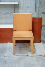 真四角の座面に、レザーの背もたれが刺さっているようなデザイン。表裏レザーであったり、質感も上質。