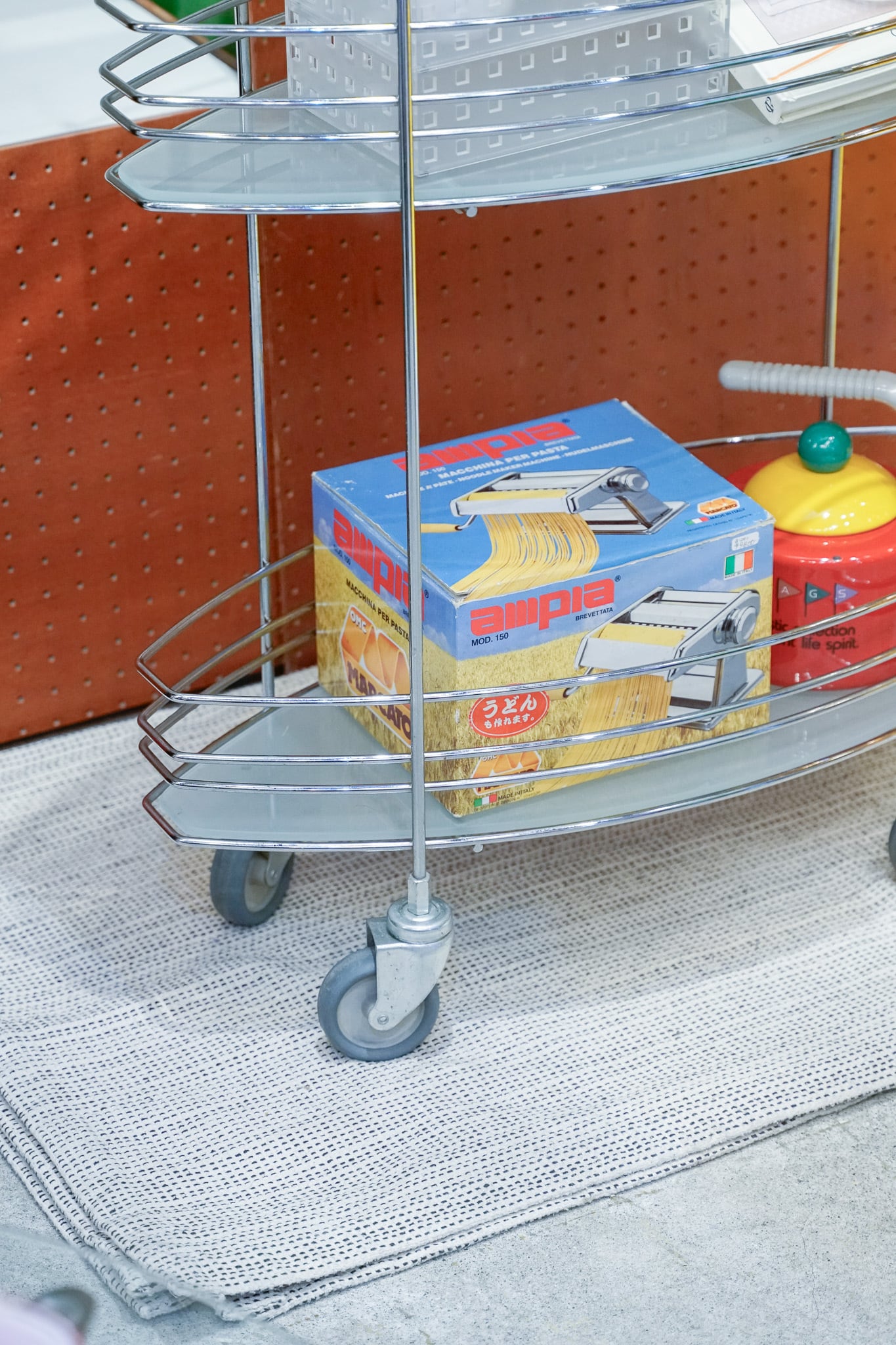 キャスター付すりガラスワイヤーラック