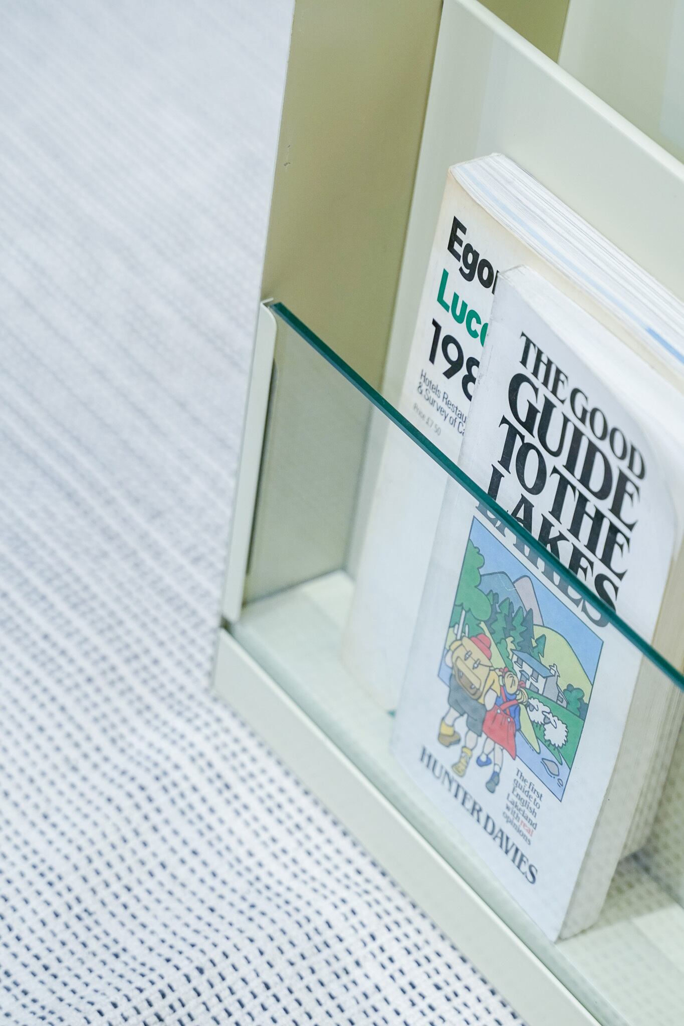 一番下の棚のところだけアクリルが嵌め込まれていて、本を見せびらかすことができます。