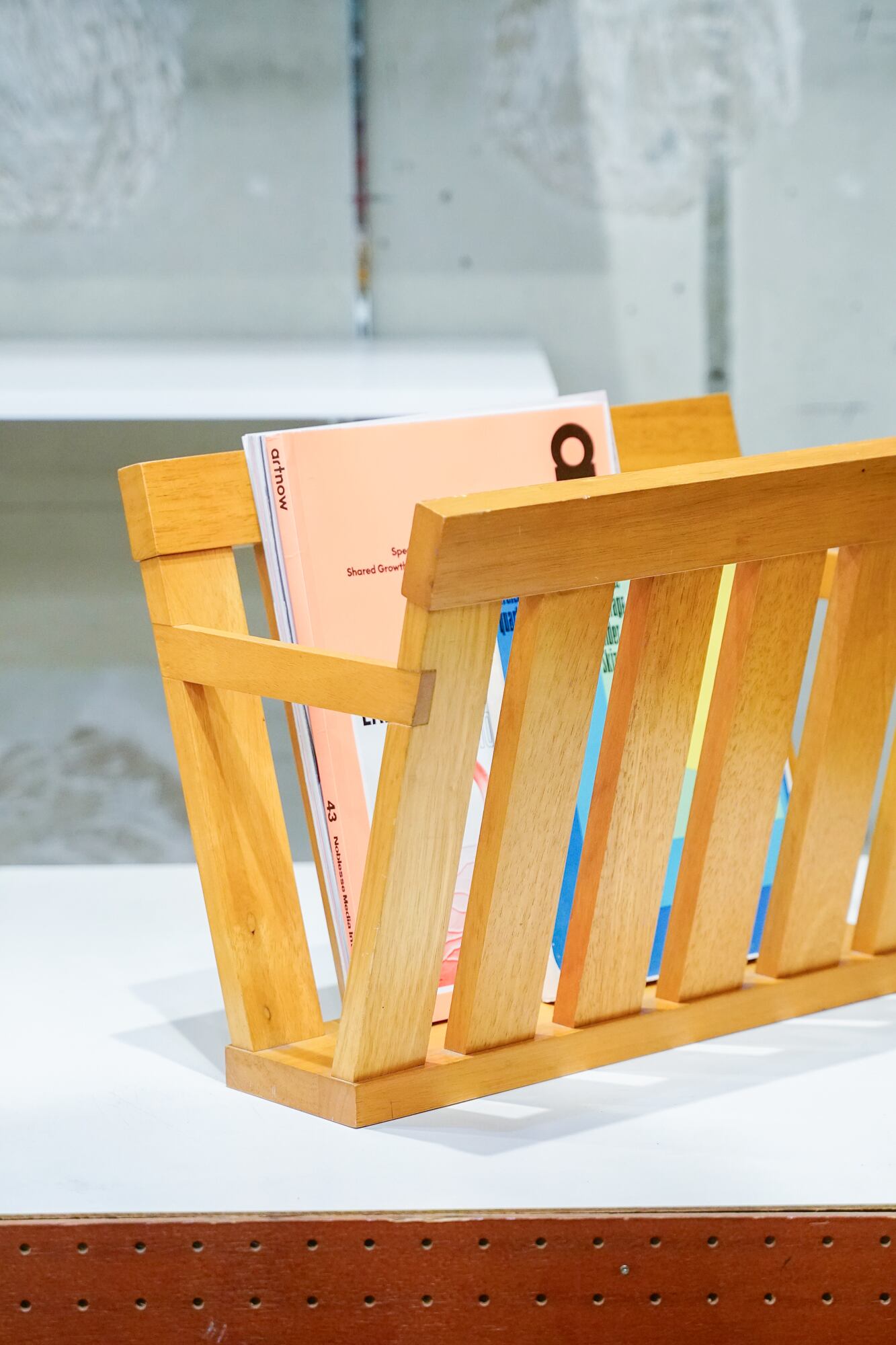 とっても直線的なマガジンラック。重みもあって、しっかりした作りです。