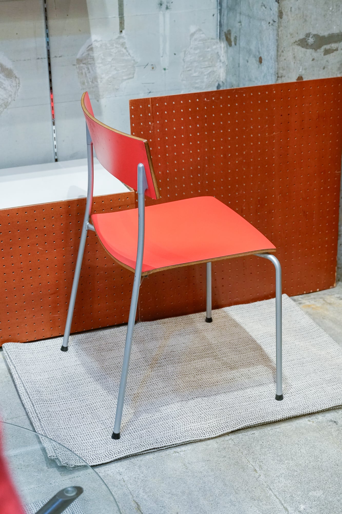 パリッとした赤色もかわいくて、軽くてスタッキングも可能。