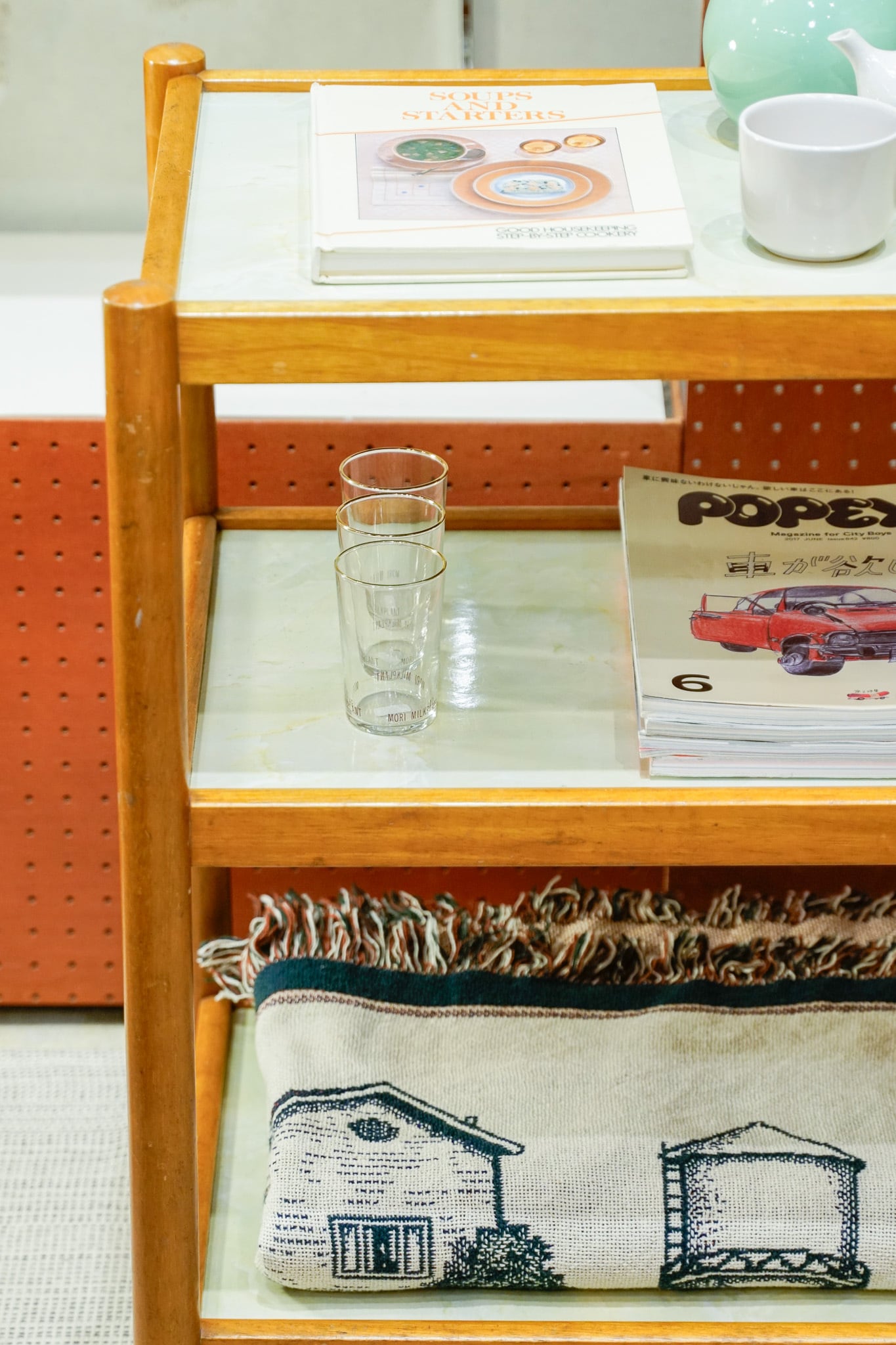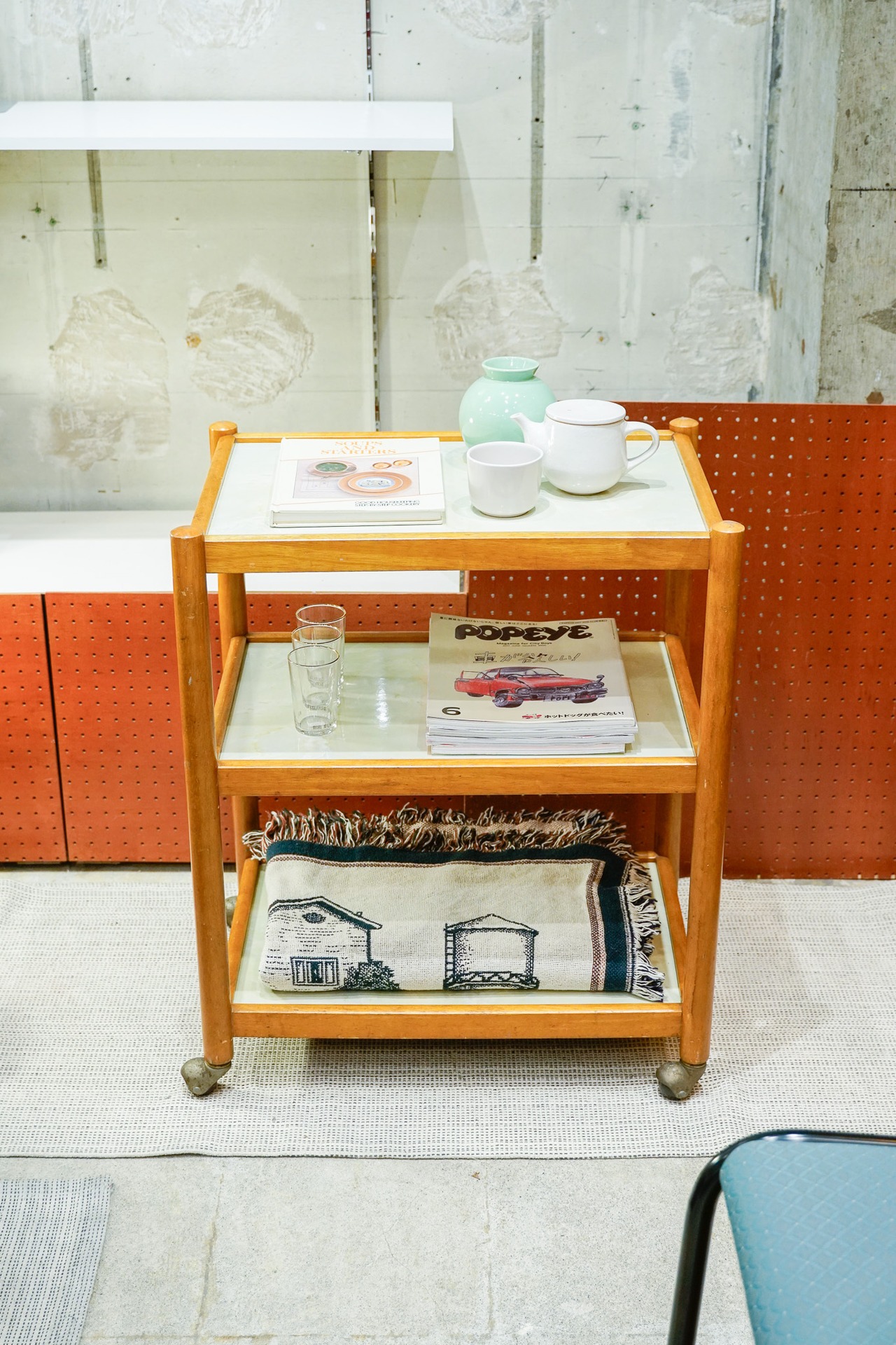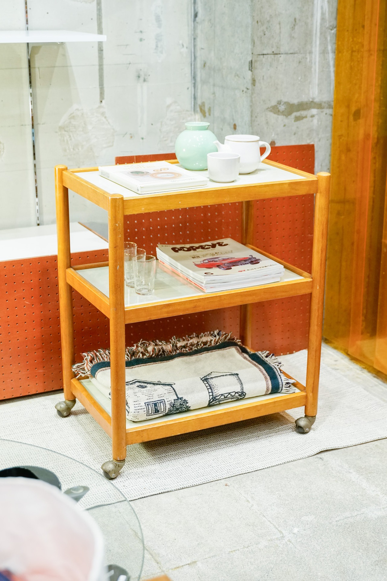 キッチンワゴンっぽいのでキッチンでつかうのもよし、お部屋で飾り棚としても、植物置いても、なんでも合いそうですよ〜