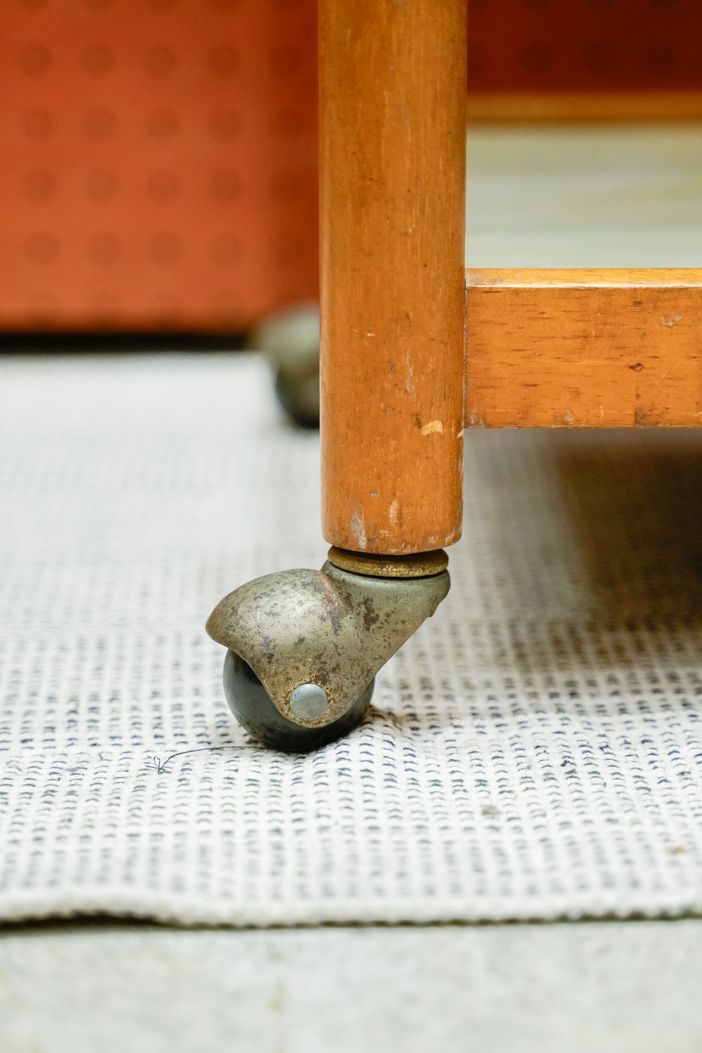 そして台の部分は緑がかった石調になっています。極め付けこの丸っこいキャスター。グッドポイント3拍子が揃いました。