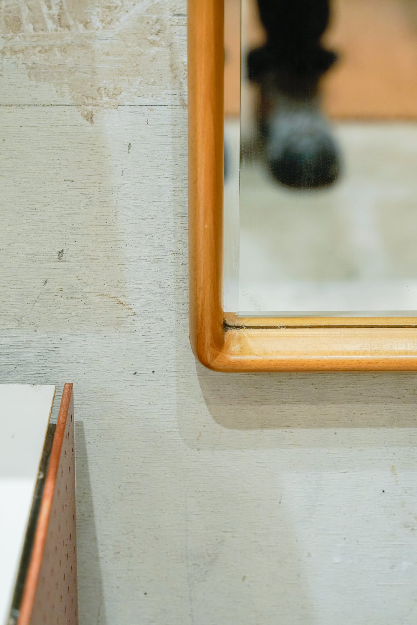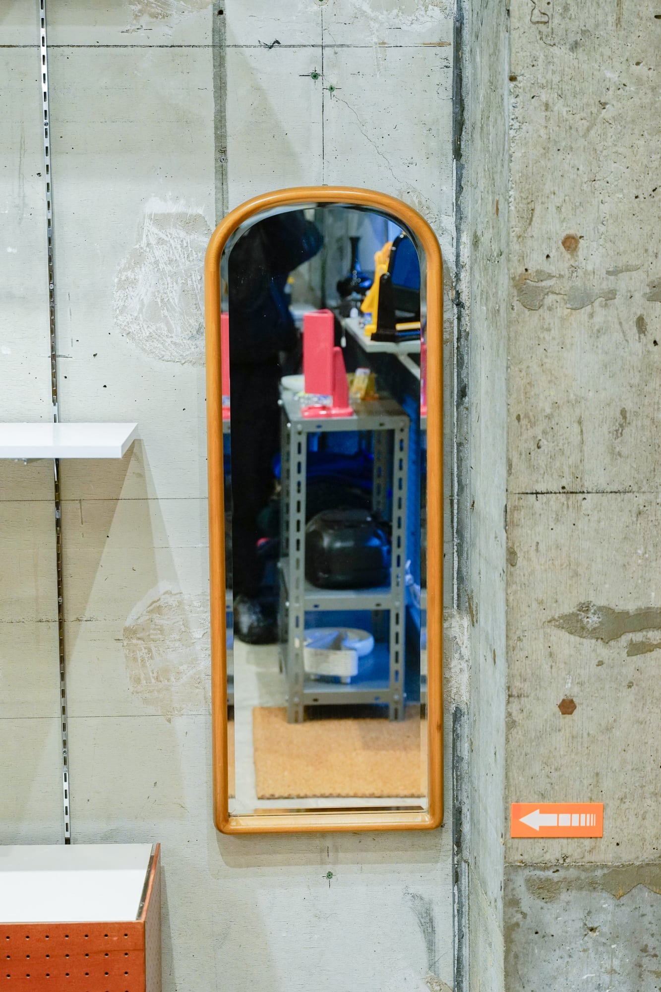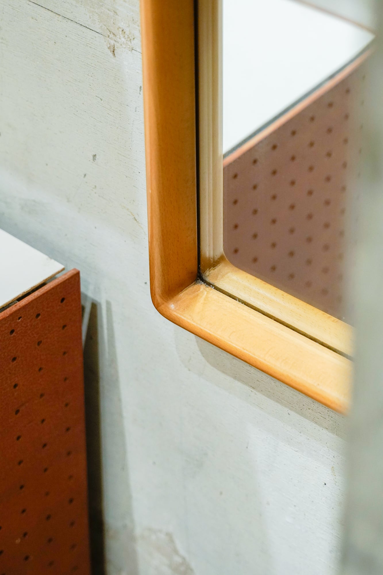 裏に紐がついているので壁掛けもできますし、もちろん立てかけて使っても。