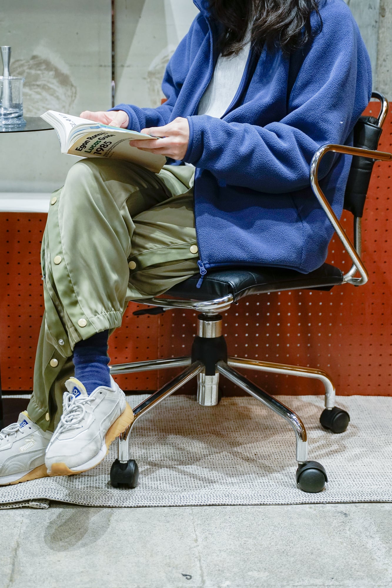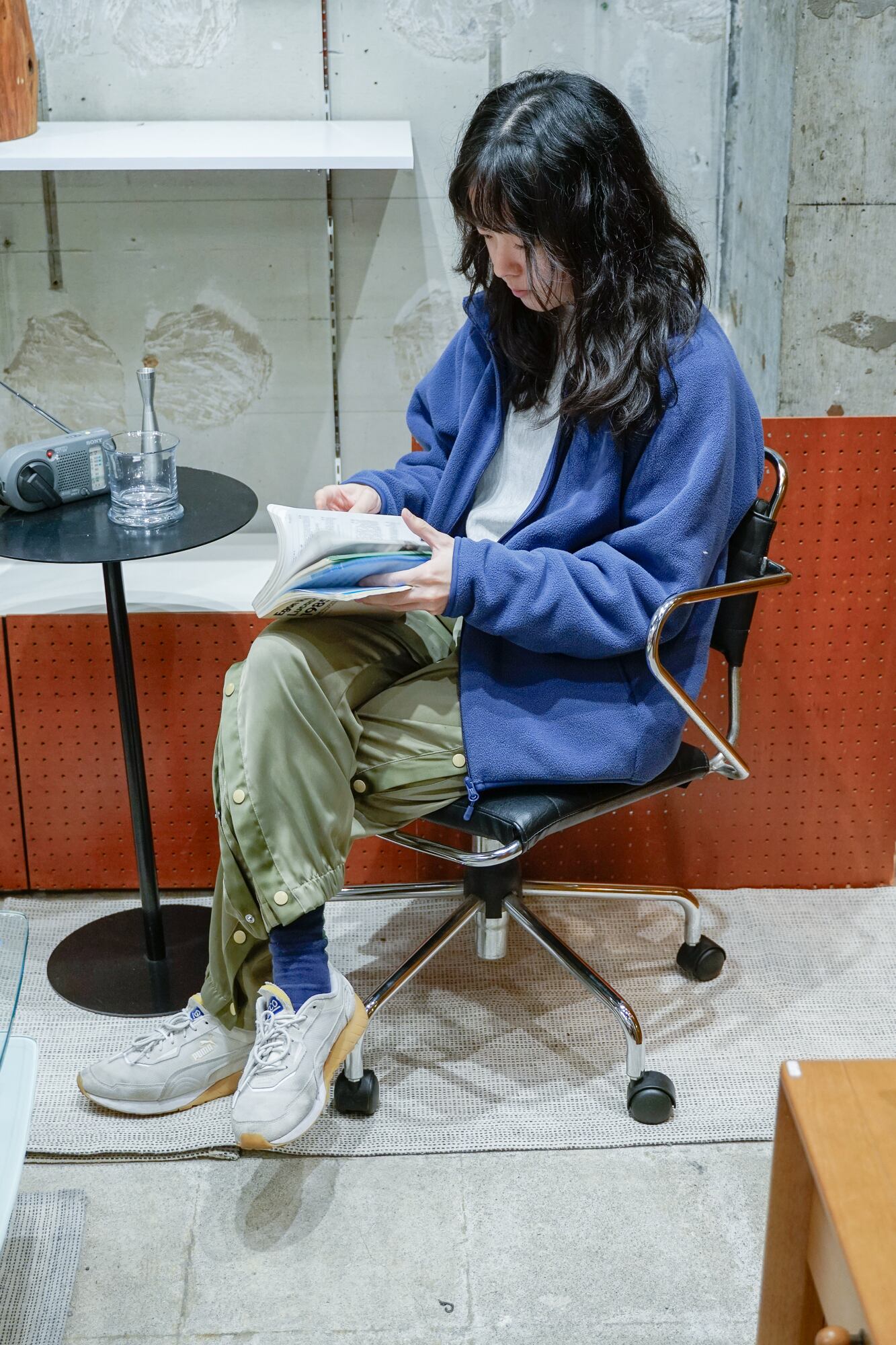 デスクチェアではあるのですが、写真のようにサイドテーブルを置いてみると、なんだかラウンジ感。このまま窓辺で夜景でも見そうな感じになりました。