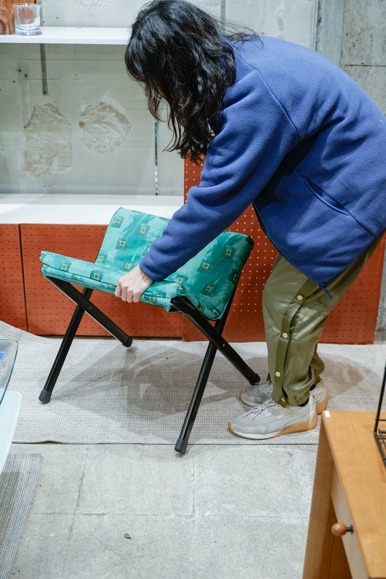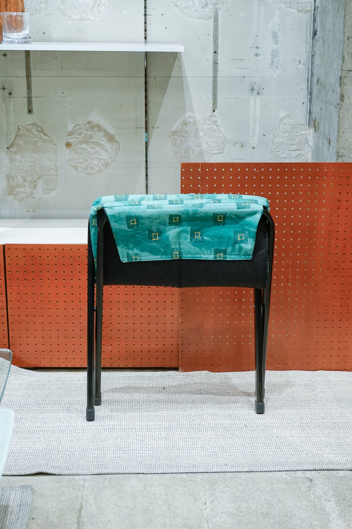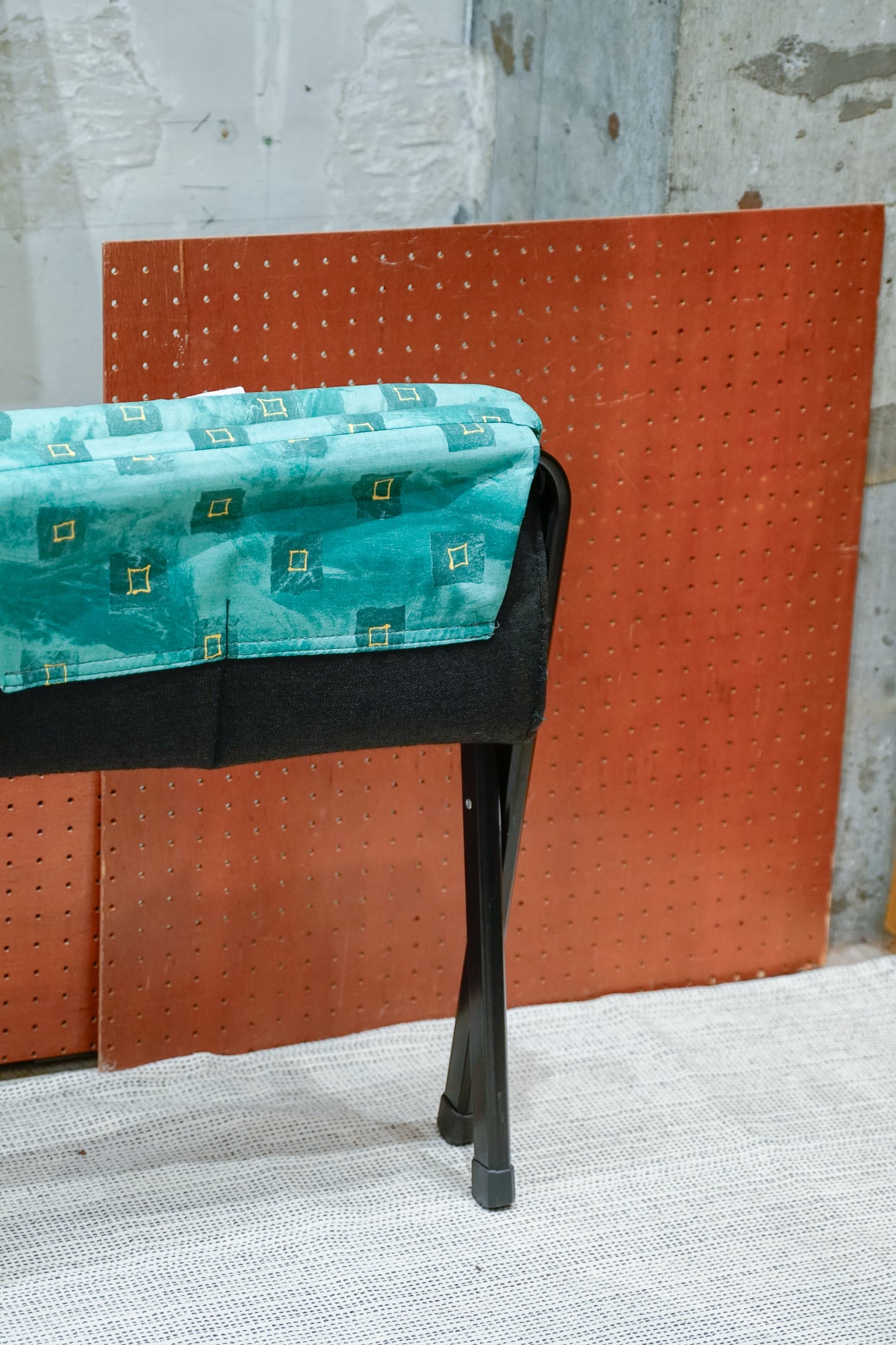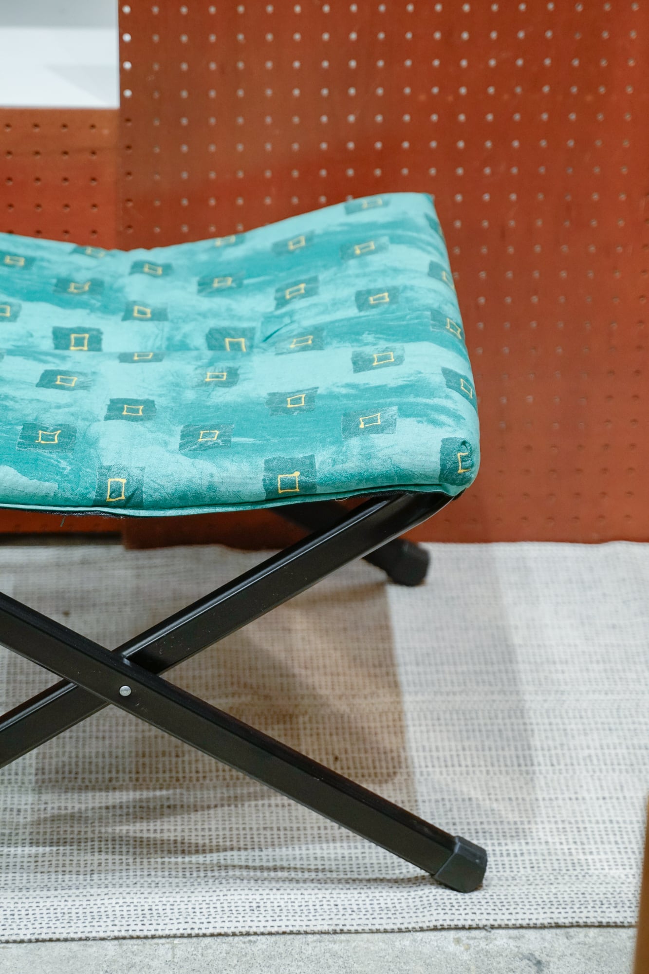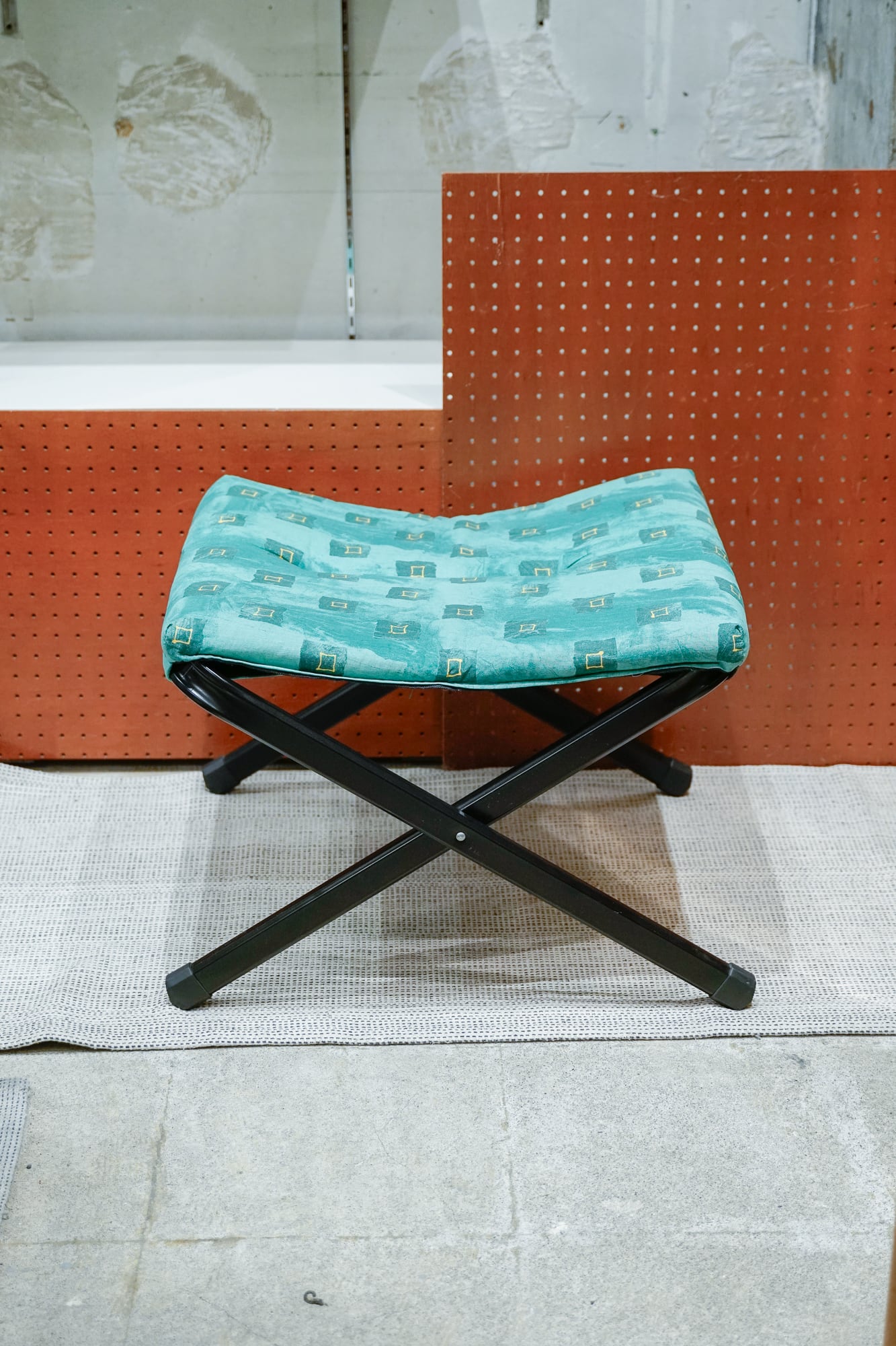 独特な柄のクッションがついた折り畳みいす。メイド・イン・イタリーと書いてありました。そう言われるとなんか良い感じがしてくる。