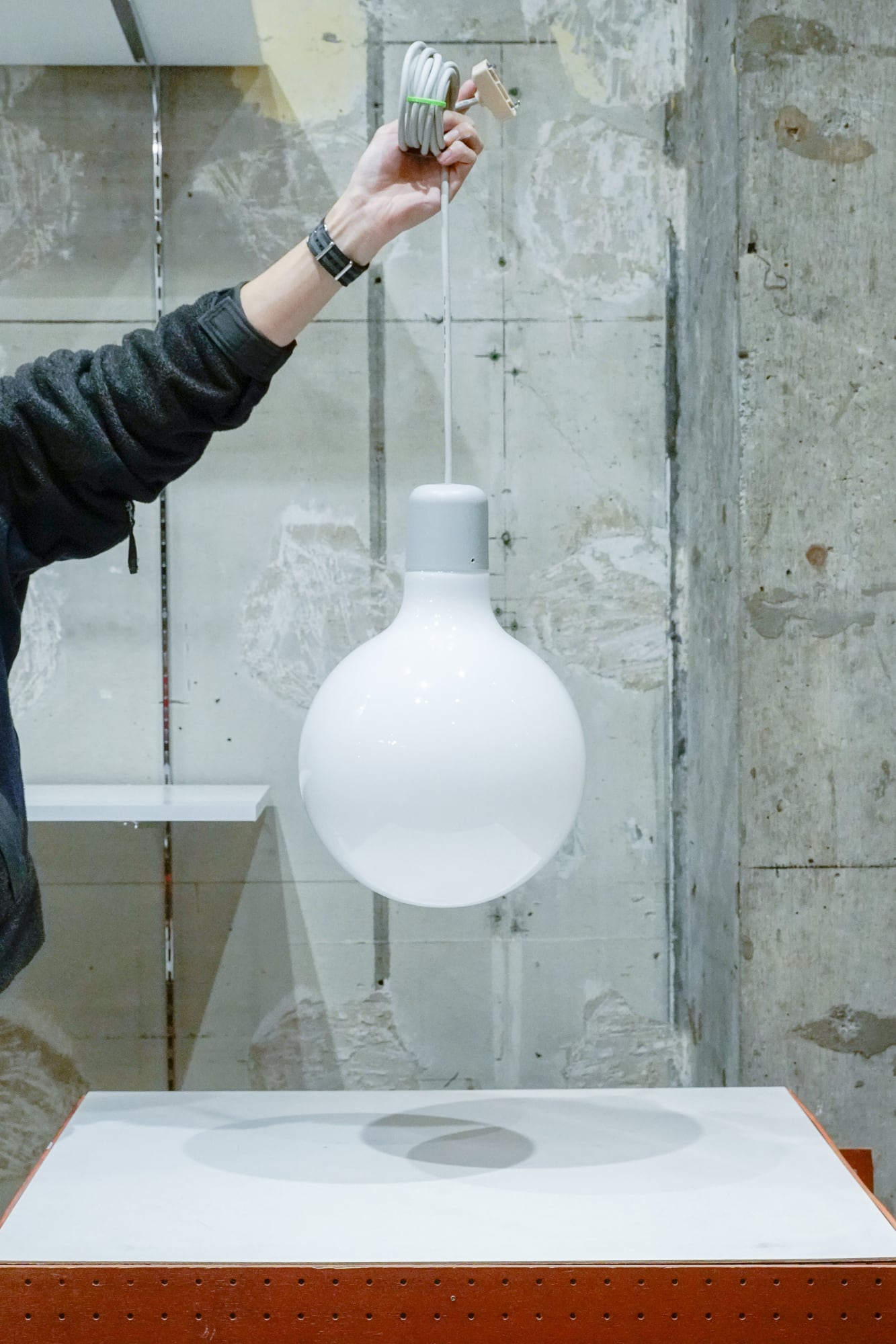 コードがめちゃくちゃ長いので、吹き抜けなどにポツリと吊るすのもカッコ良さそう。