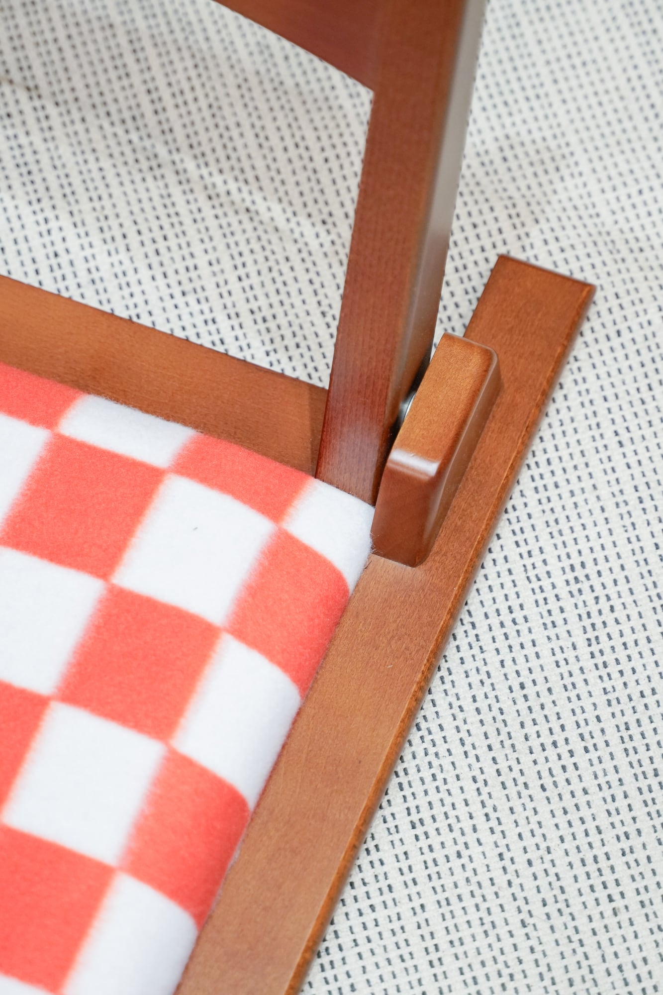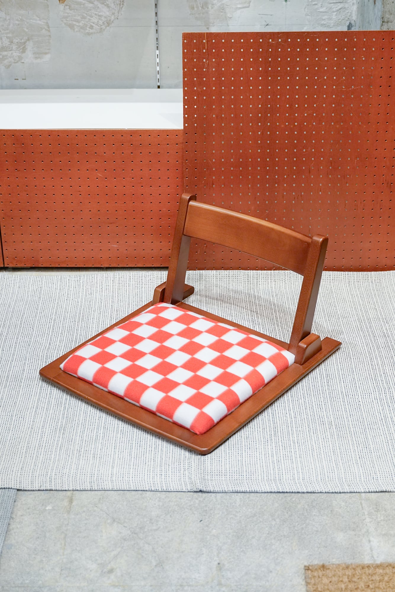 こちらの座椅子は渋〜い素材の場面だったので、パッキリポップな布に張り替えました。