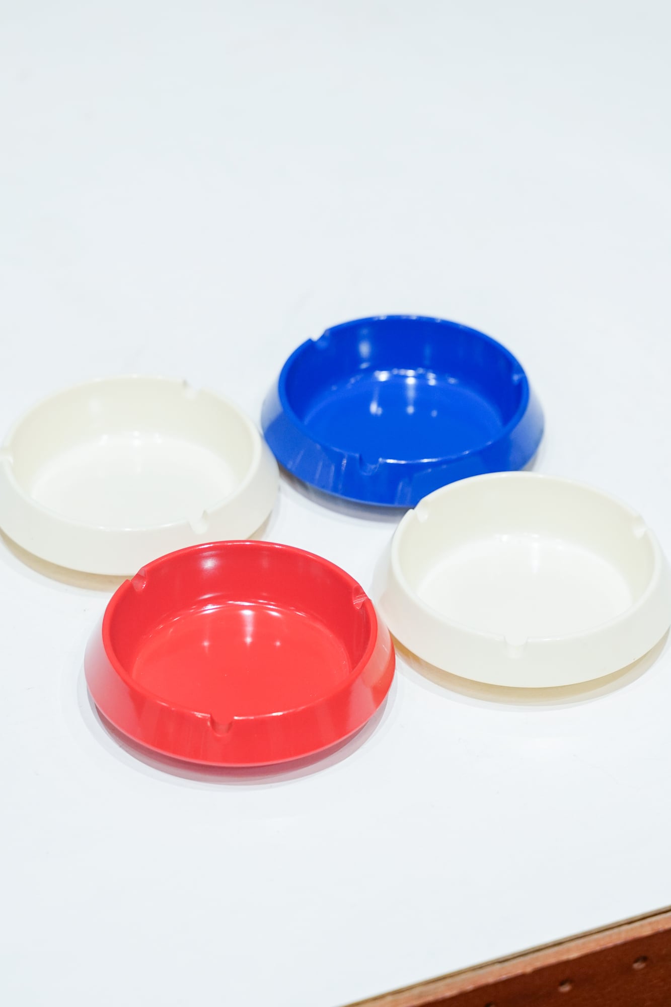 アイボリー、ブルー、レッドの3色ラインナップのアッシュトレー。樹脂製です。ホワイトではなく、アイボリーカラーなのがちょっとレトロでかわいい。