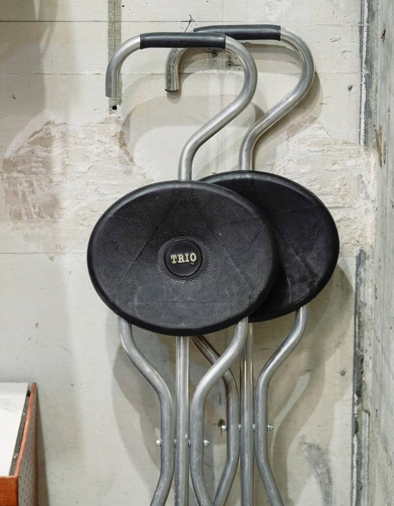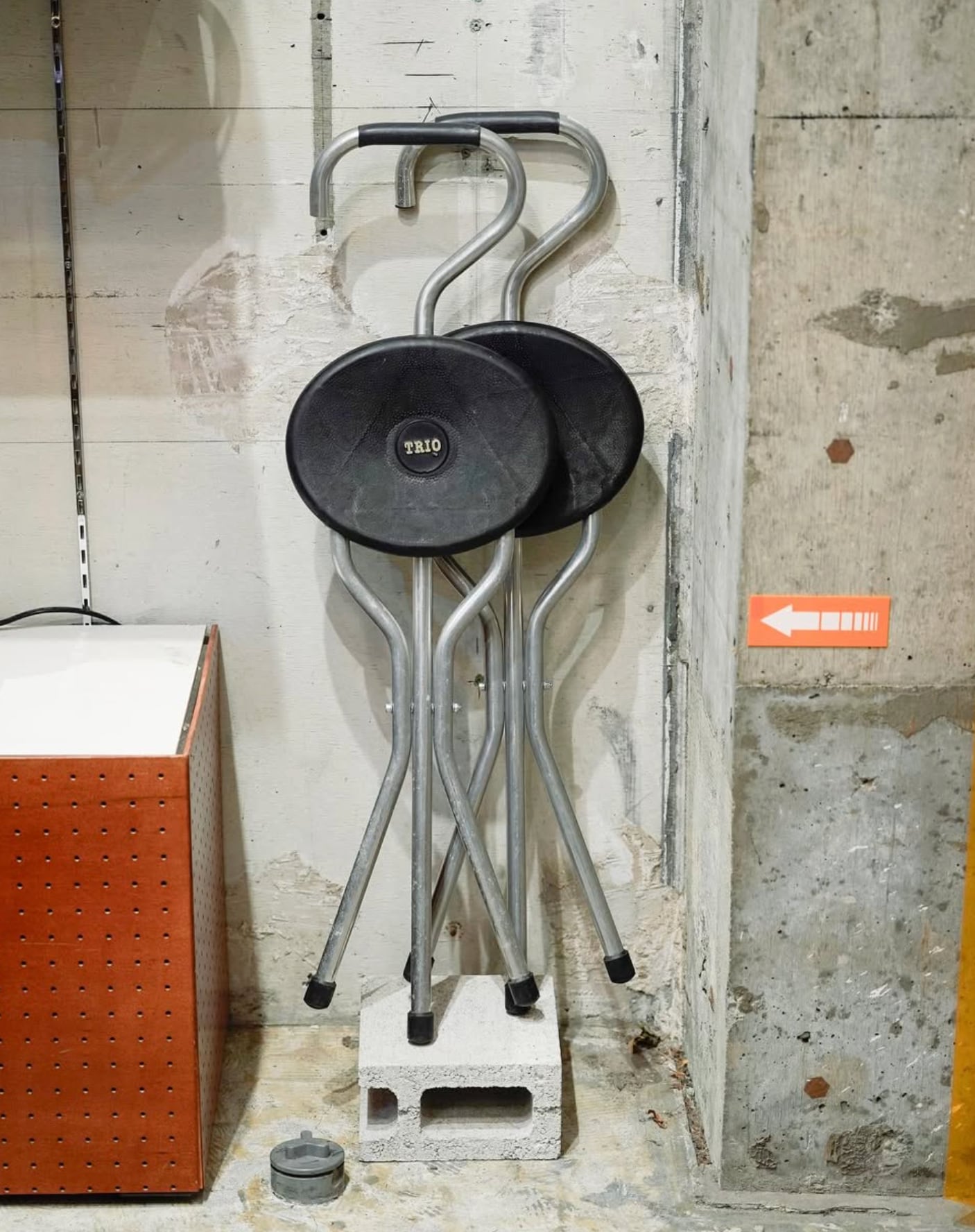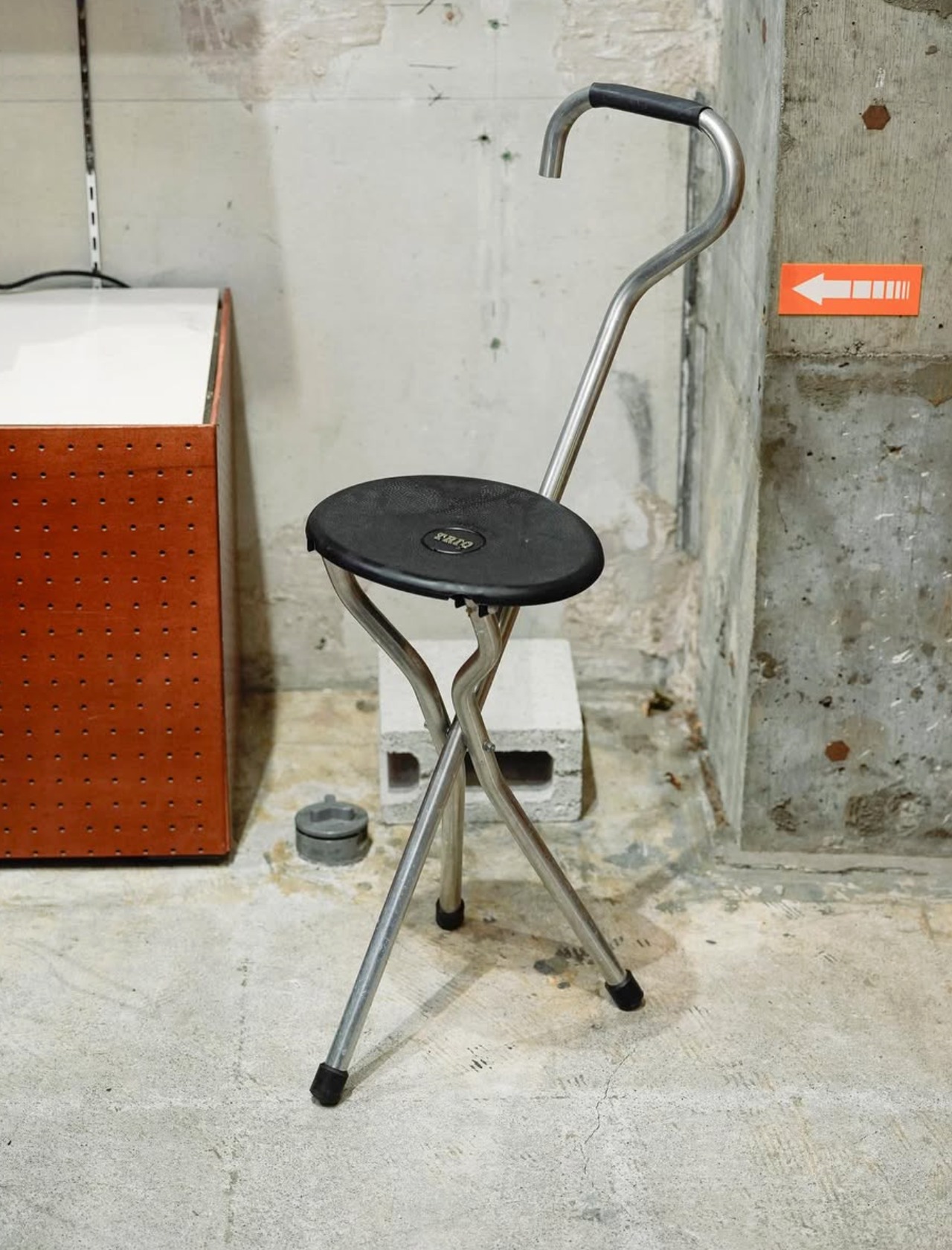杖になりそうな折りたたみ椅子です。アルミでてきているからか、めちゃくちゃ軽い。腕にかけて楽々持ち歩けるくらいです。そして必要な時にサッと椅子になる....便利ですね。