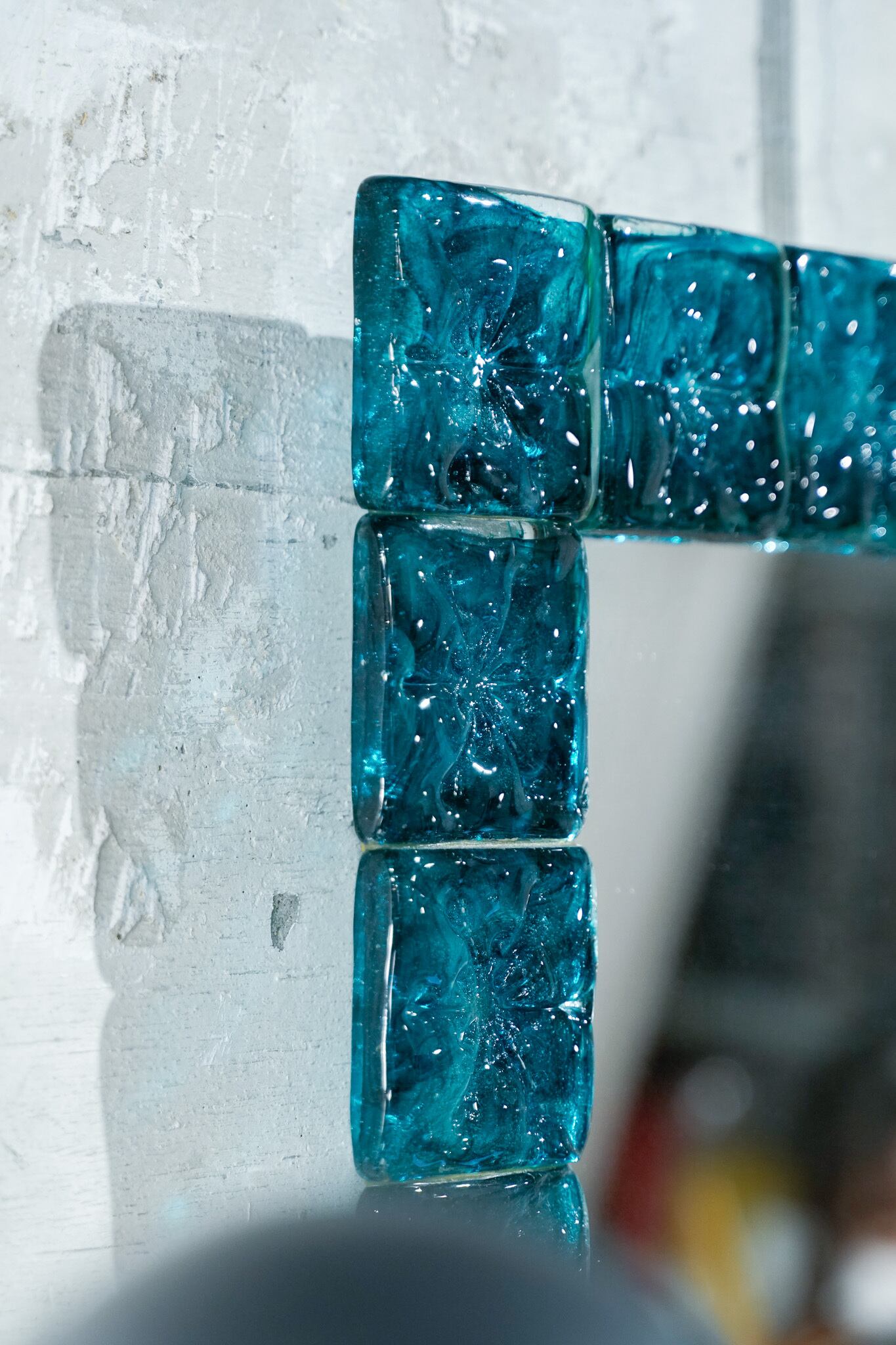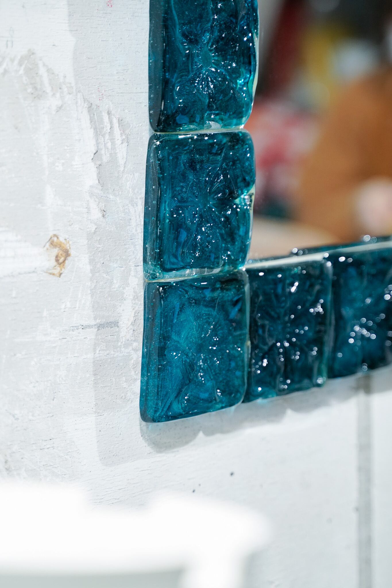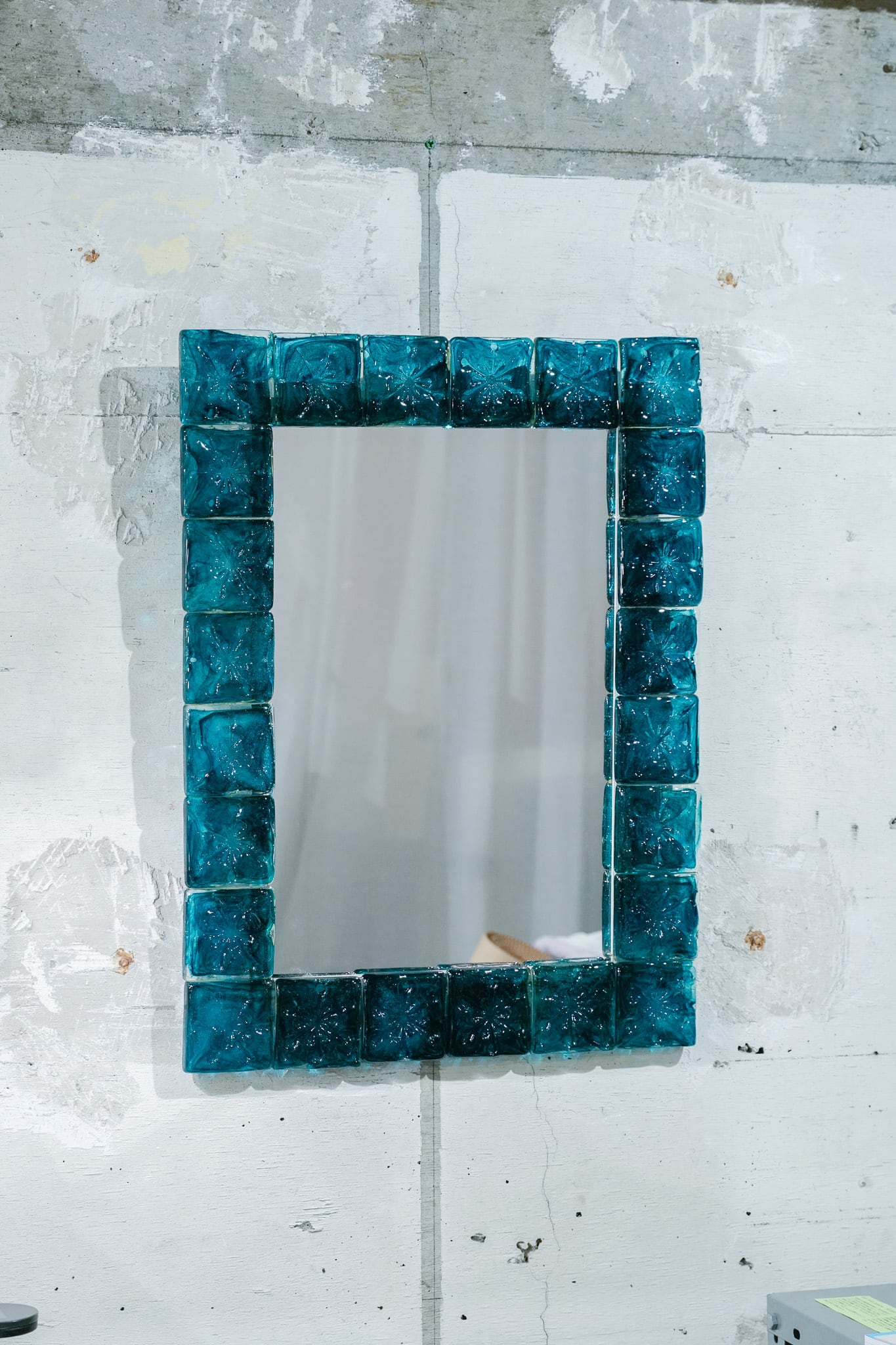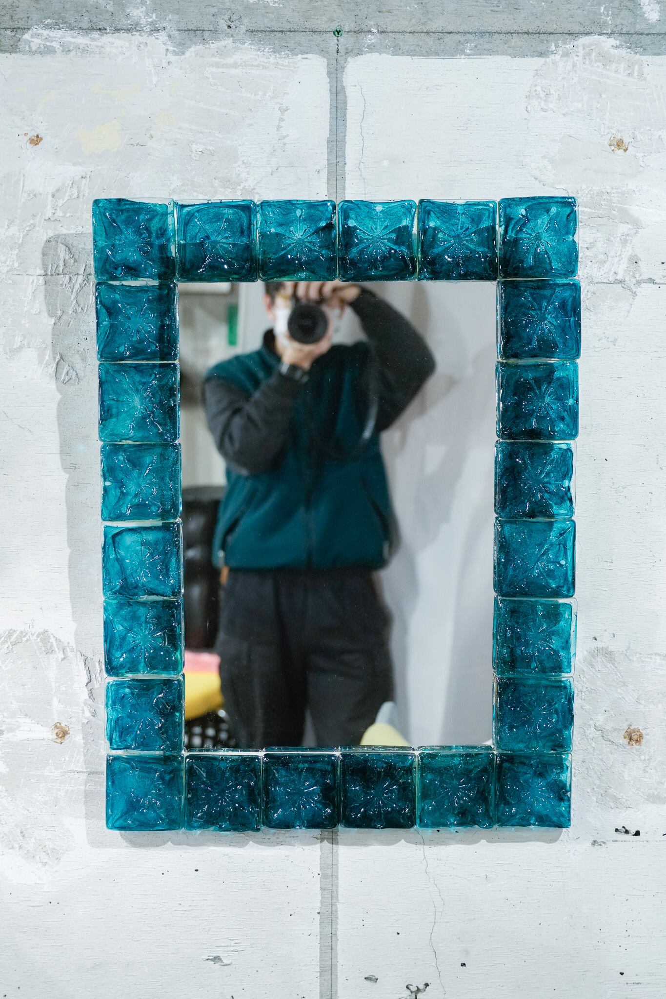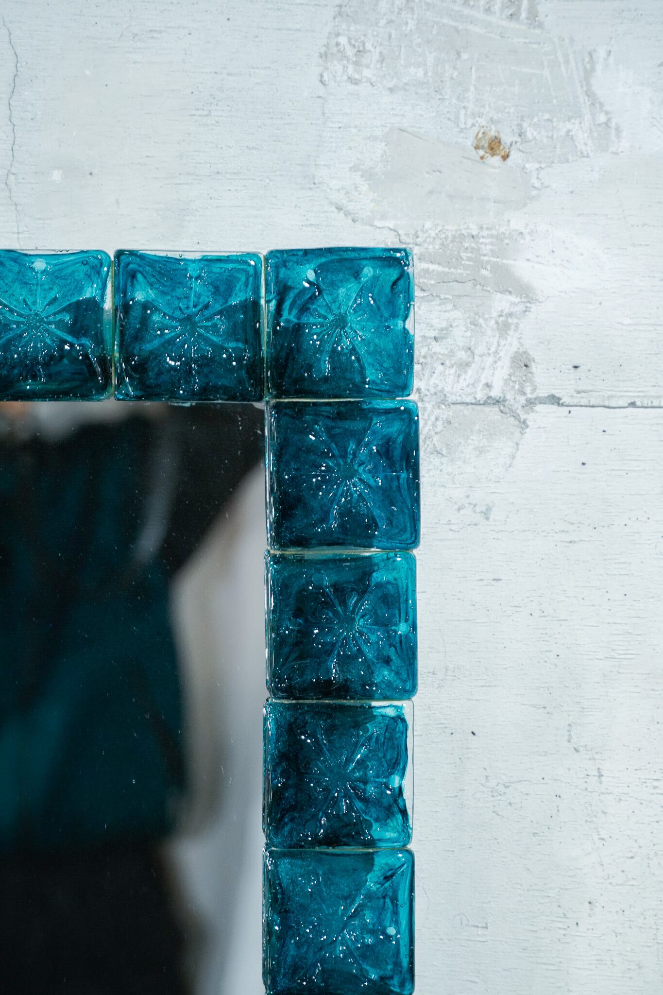 緑ガラスの壁掛けミラー
