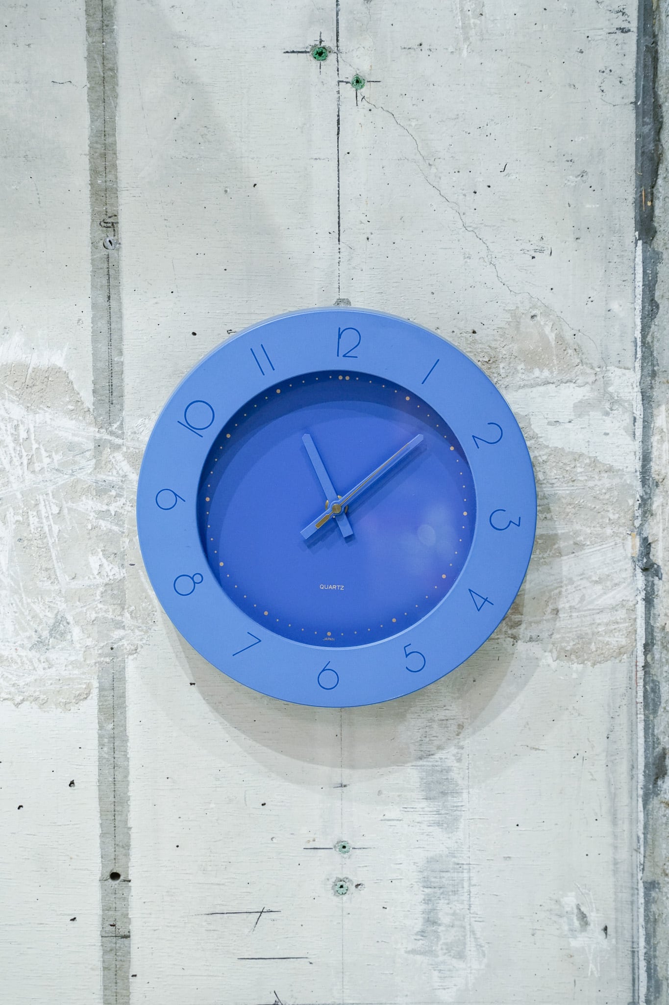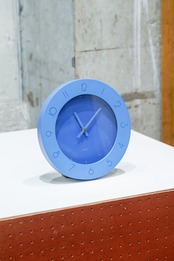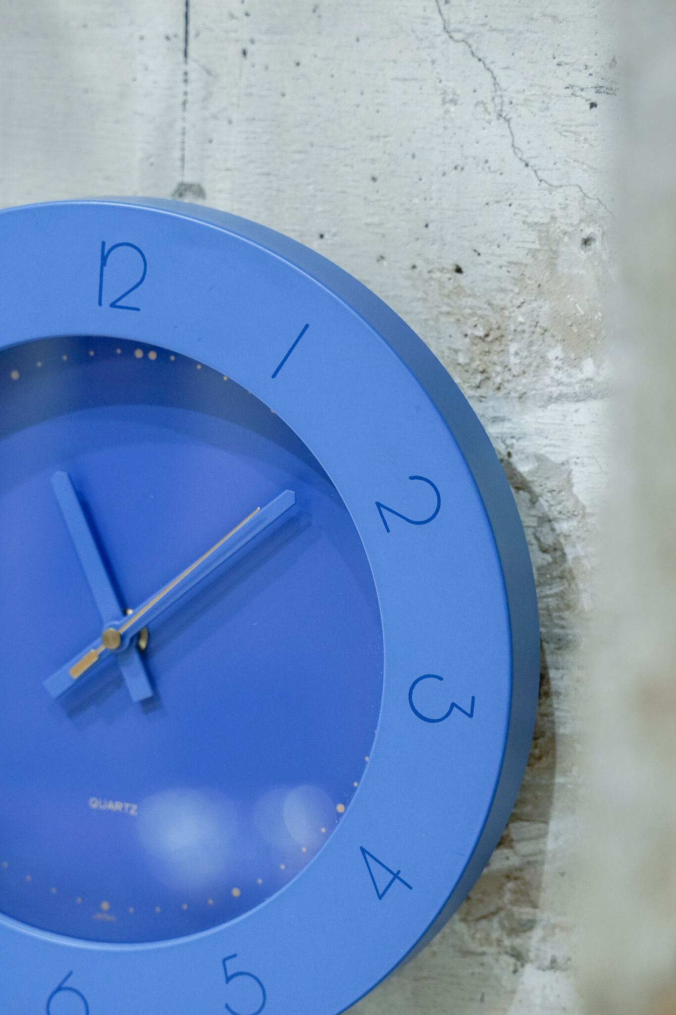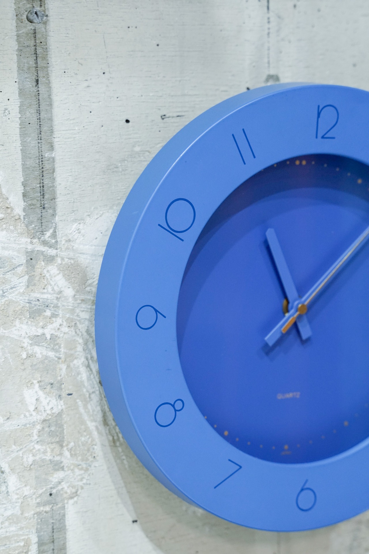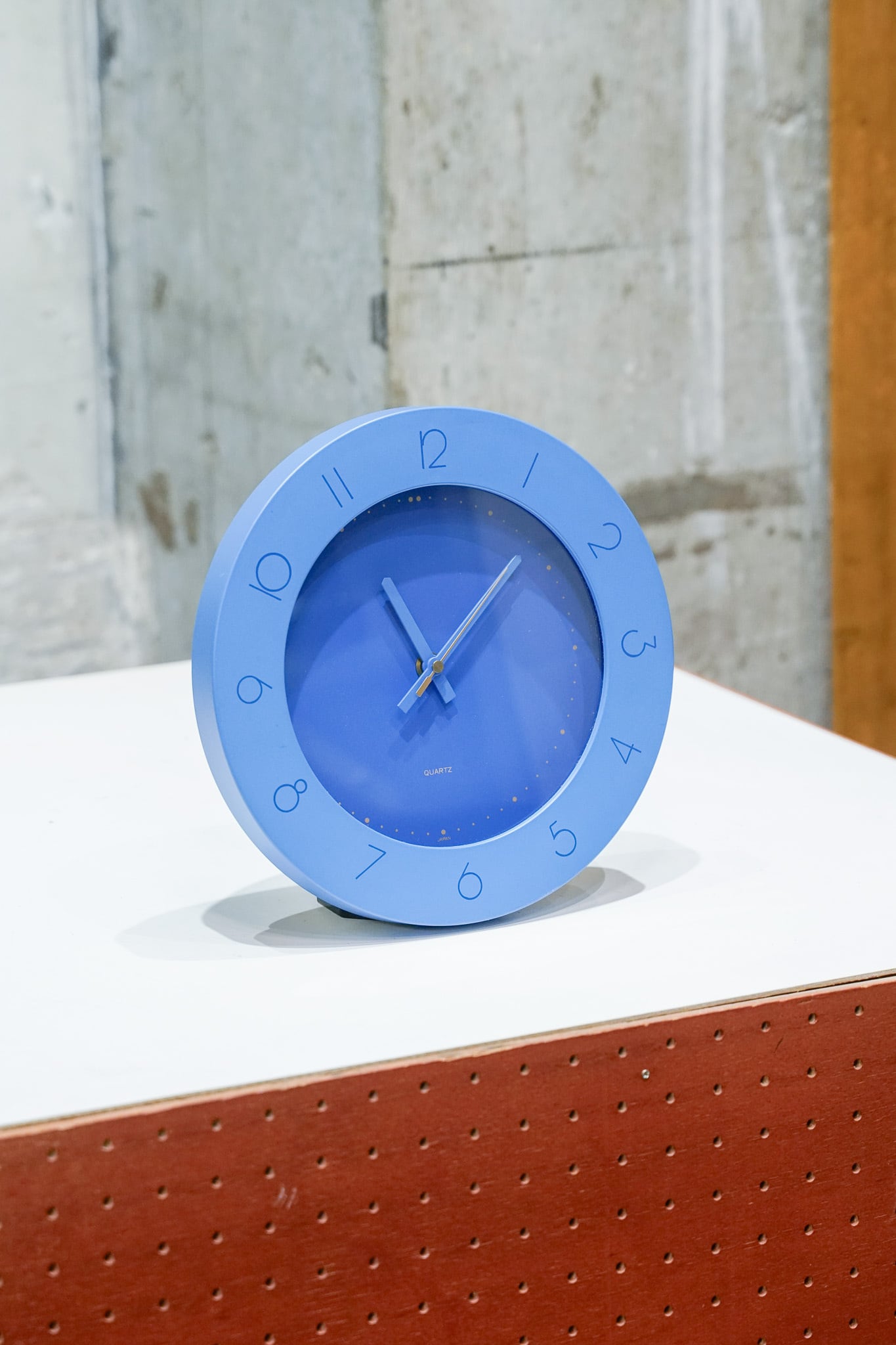 ブルーで構成された時計。かわよいフォントの数字が外側の枠におさまってるのがグッドです。内側にも分数を示す点々があるので、時間はちゃんとわかるようになっています◎