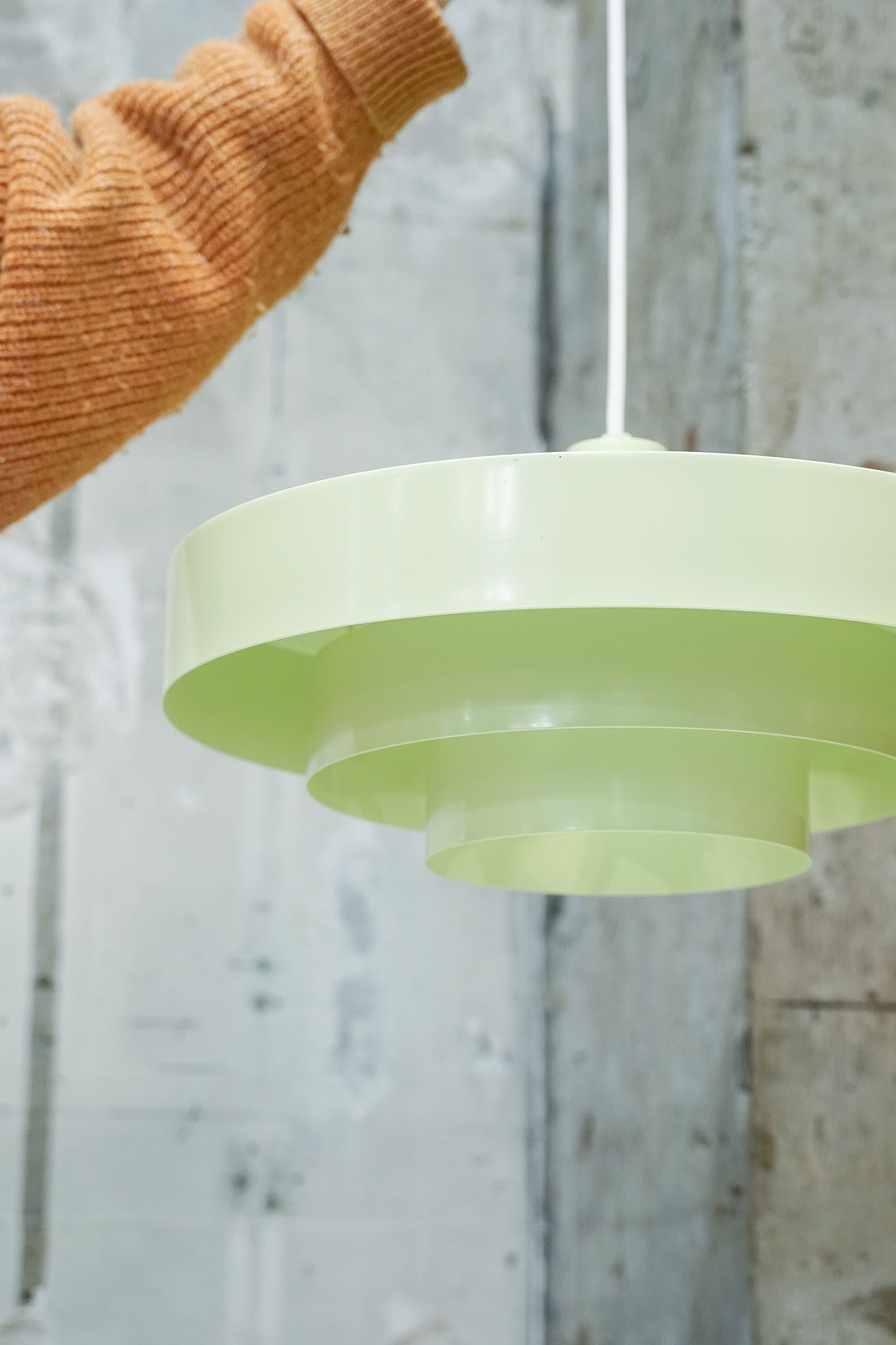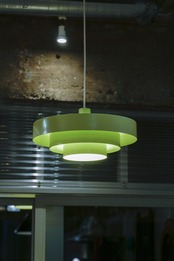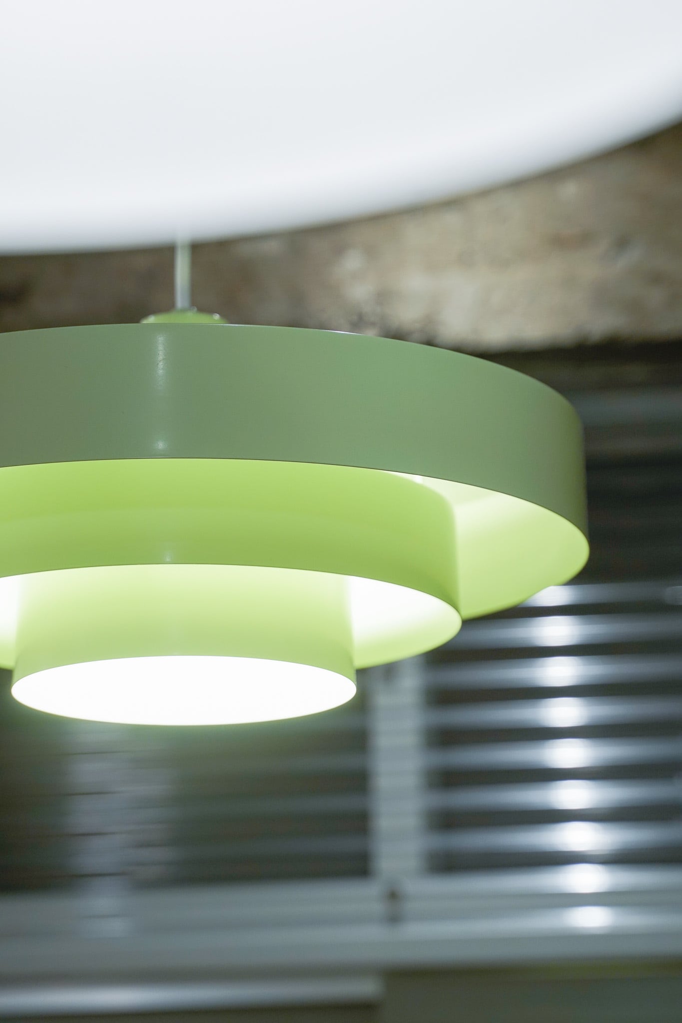 ペールグリーンってなんだかよい響き。まさにペールグリーンなカラーのスチール製照明です。