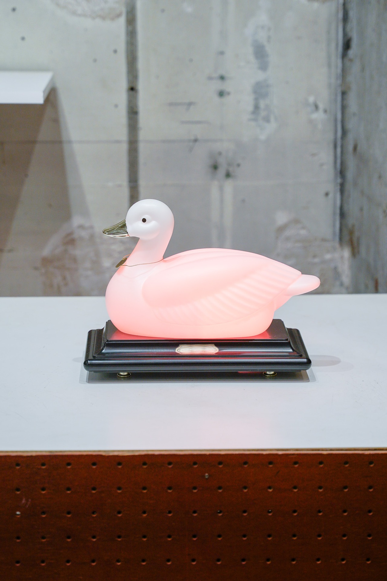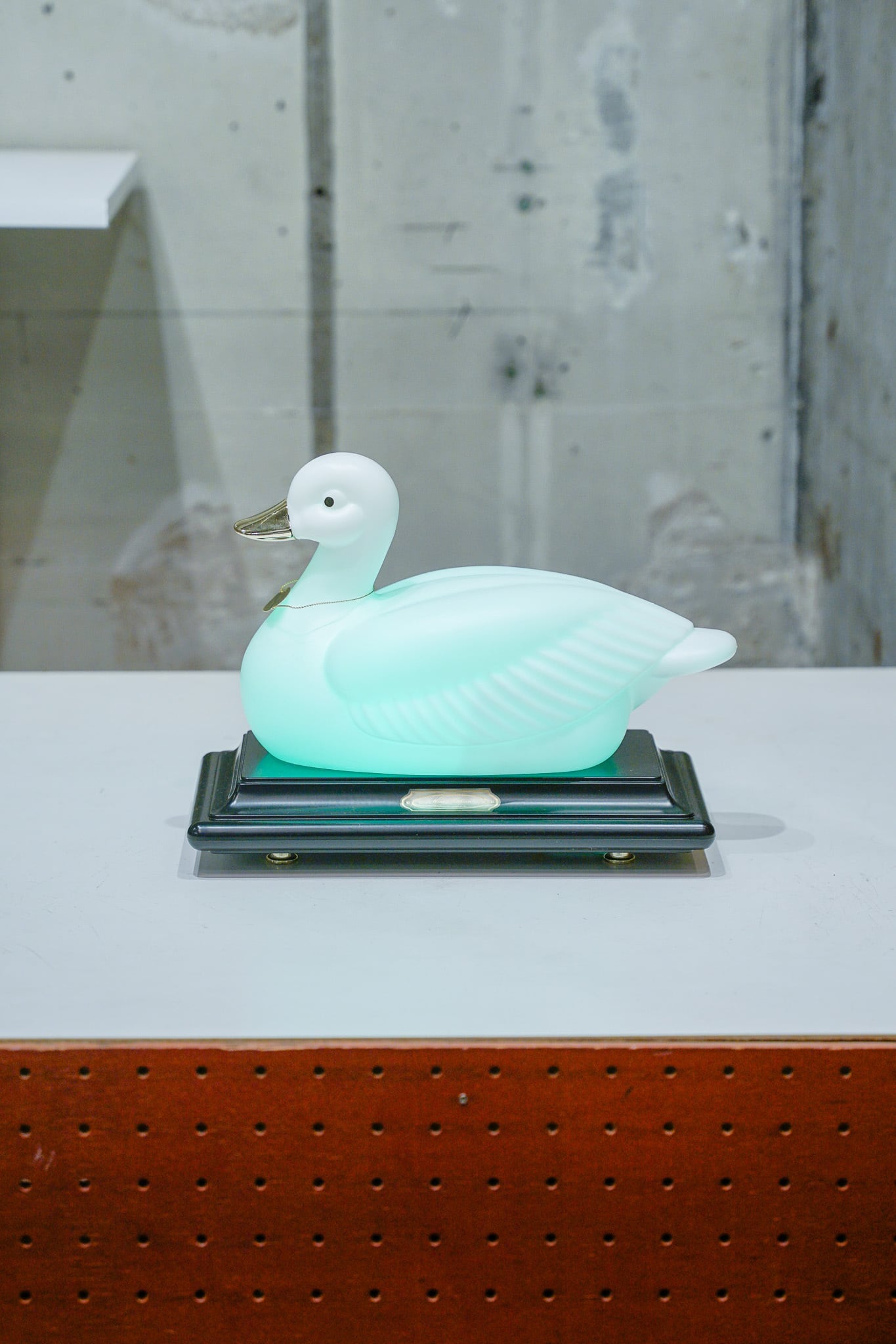 クラシカルなあひるちゃんのライトだな〜と思いきや、つけてみると、カラフルに光るじゃありませんか…。