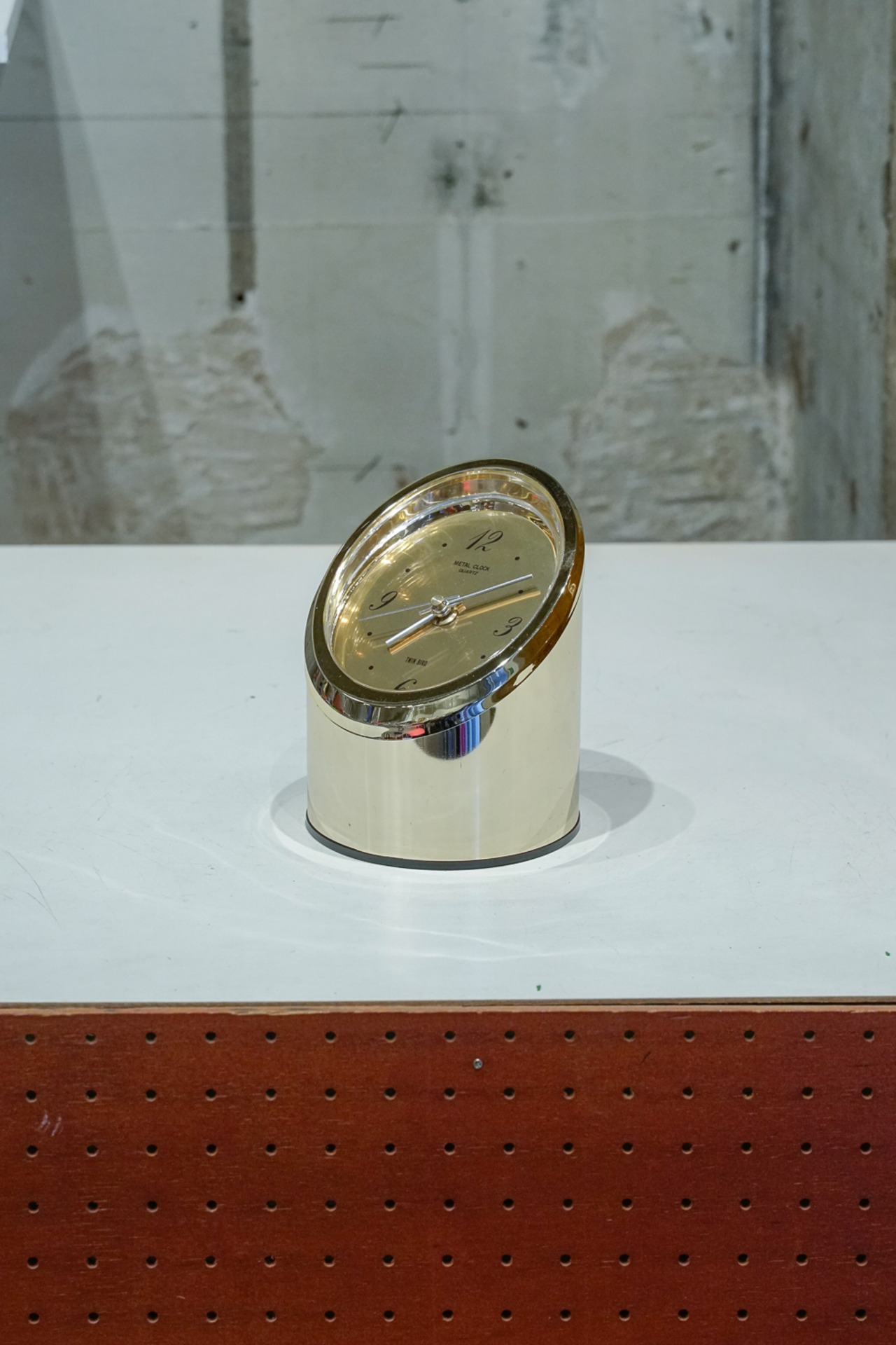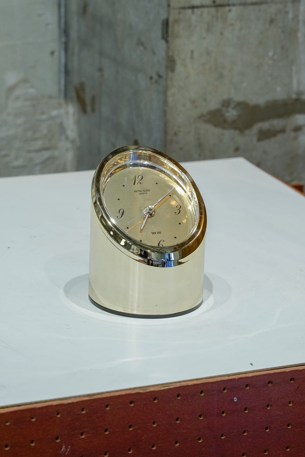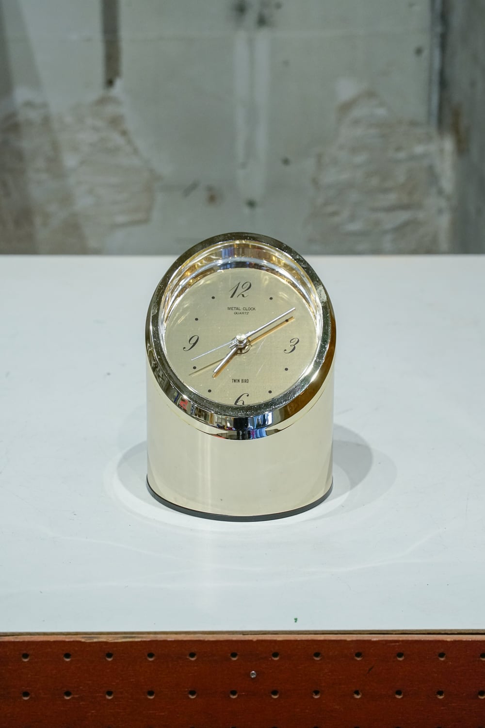 特徴のある時計をたくさん出していたでお馴染み(?)ツインバードの置き時計です。円柱を切り取ったような形状に、なんといっても金ピカのボディ。短針と長針も丸みがあって、こだわりを感じます。
