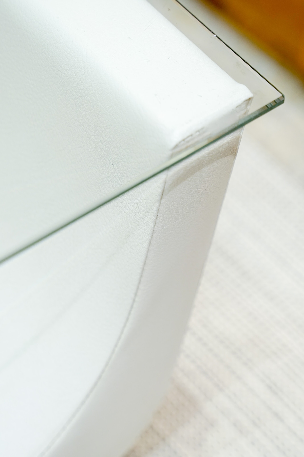 土台が合皮でできているローテーブル。写真では白く見えますが、実物はアイボリーっぽい(クリームに近い)カラーかなと思います。