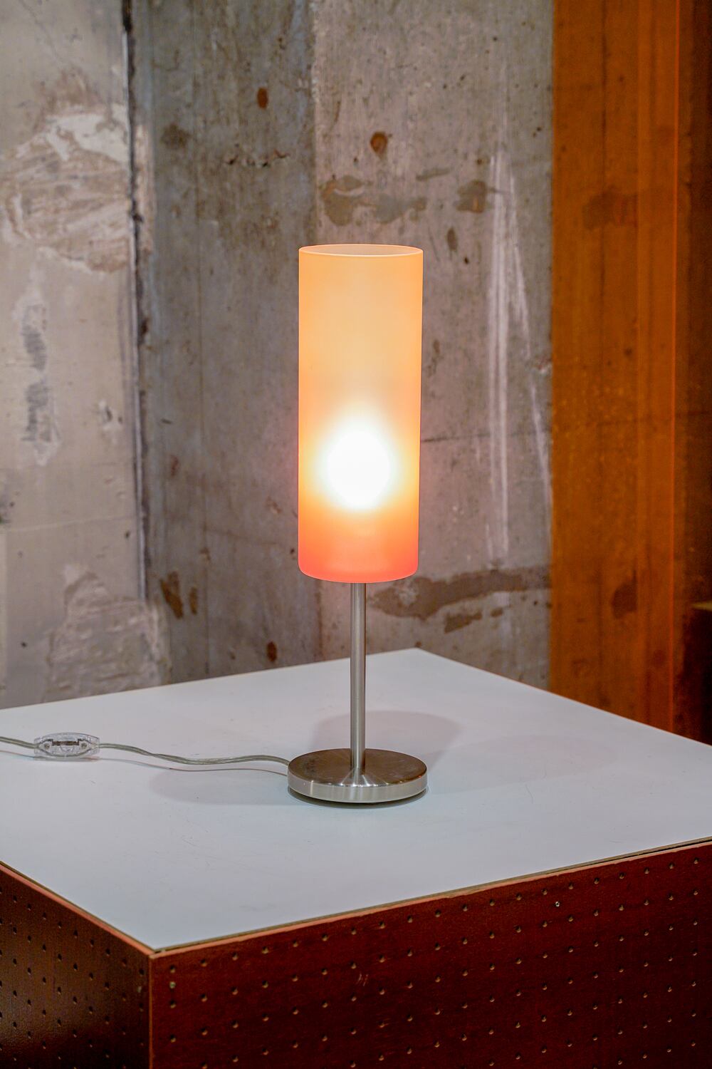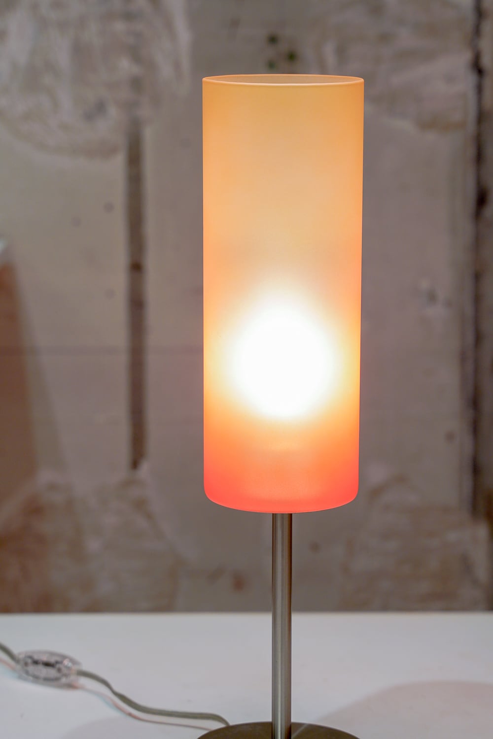 オレンジグラデーションのガラス筒が美しいランプ。