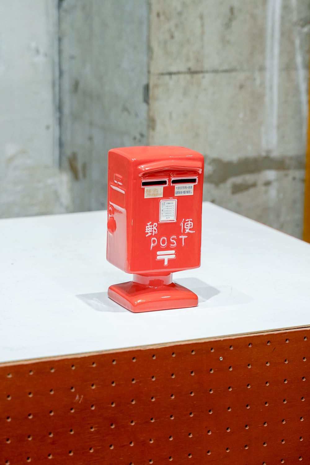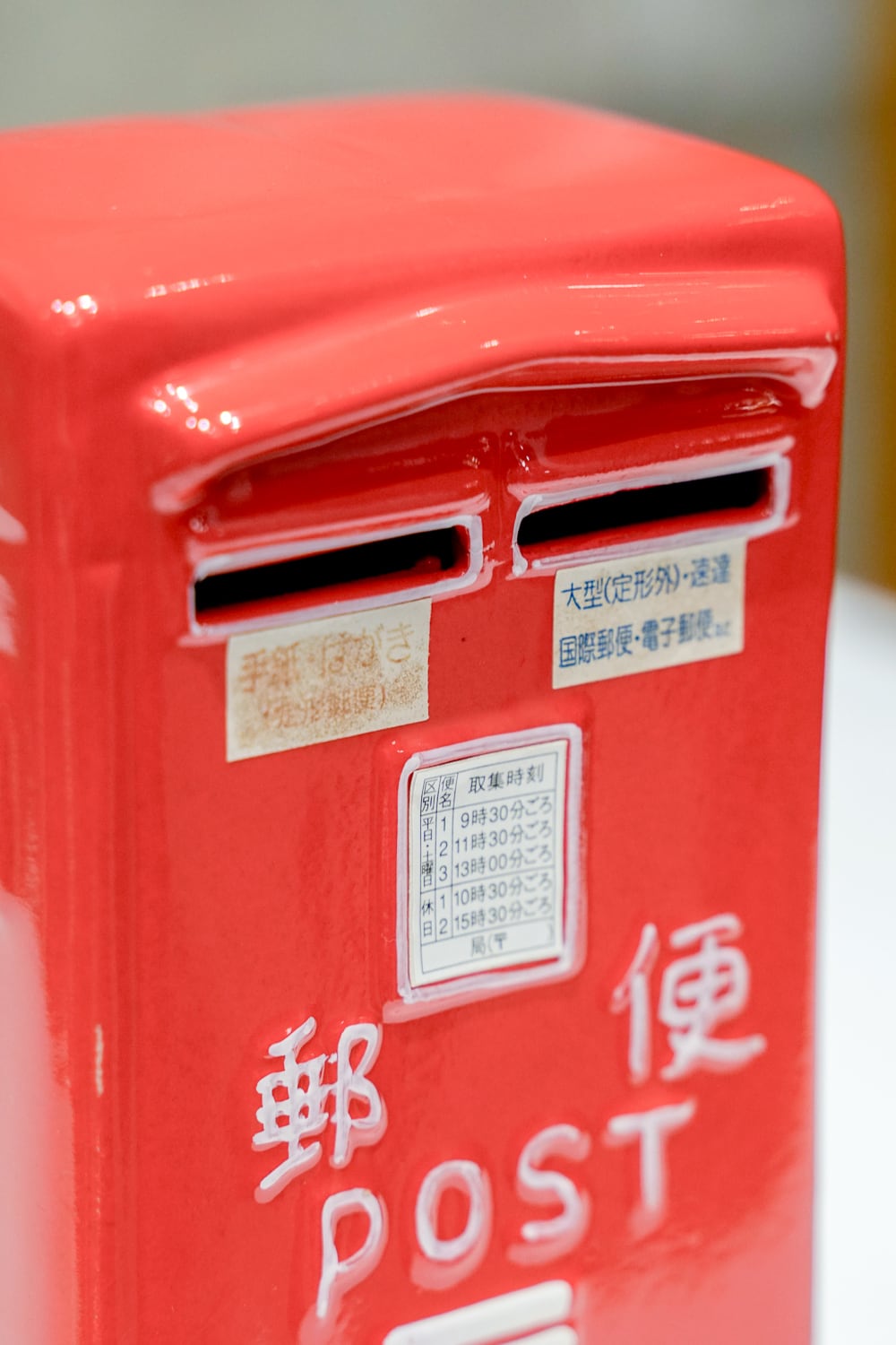 思わず投函したくなる、ポスト型の陶器の貯金箱。