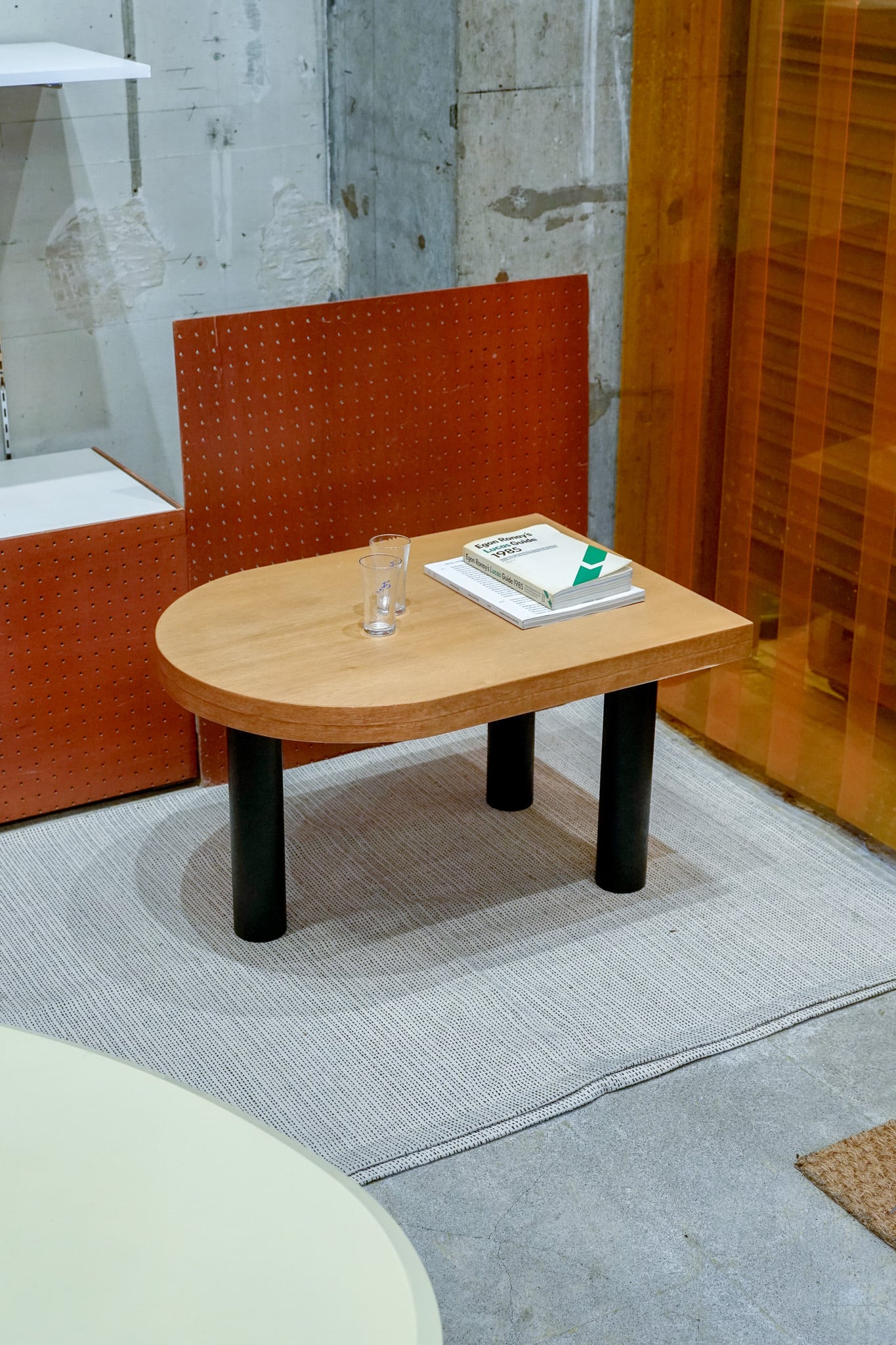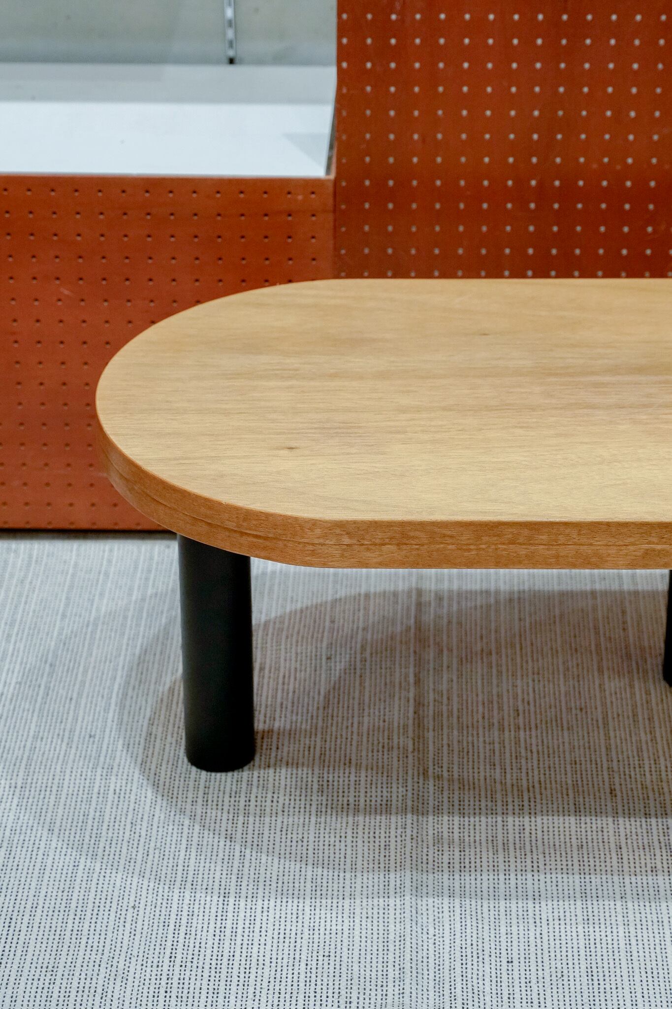 素材そのまま感のある天板、チャコールな感じに塗装してあるうっすら木目が見える脚、しかも脚は3本、なんかどこを見てもいい感じです。