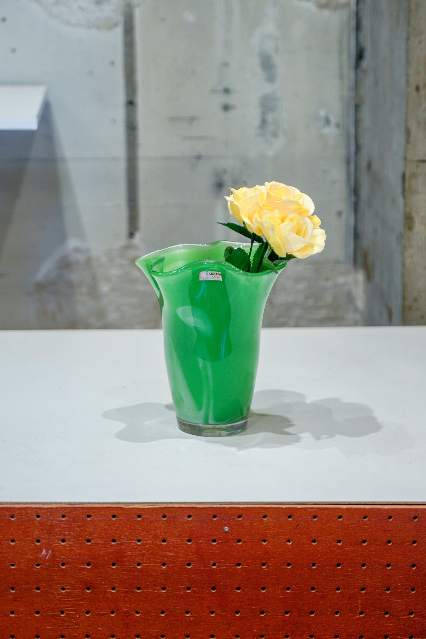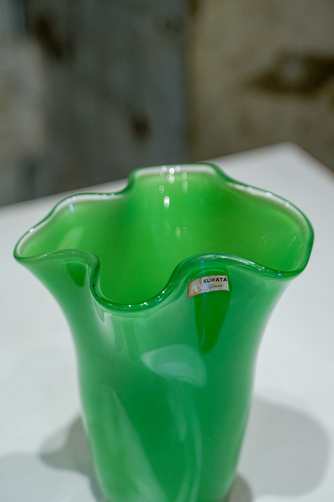 ひらひら形状のガラスの花器。
