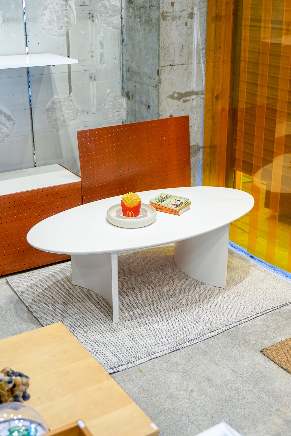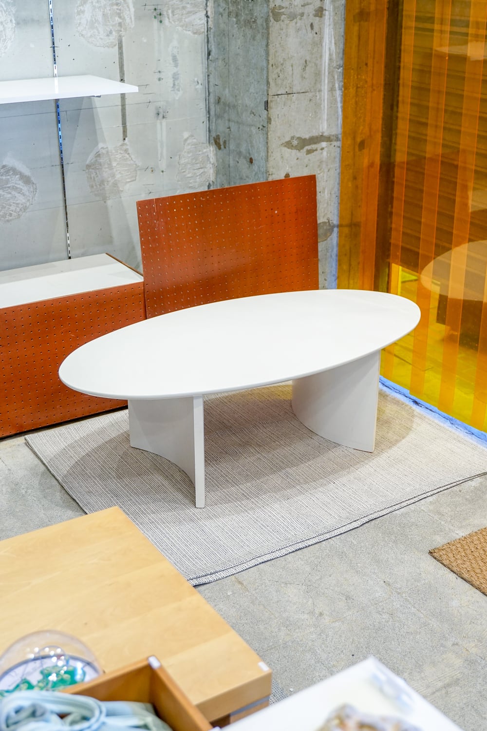 白い楕円ローテーブル