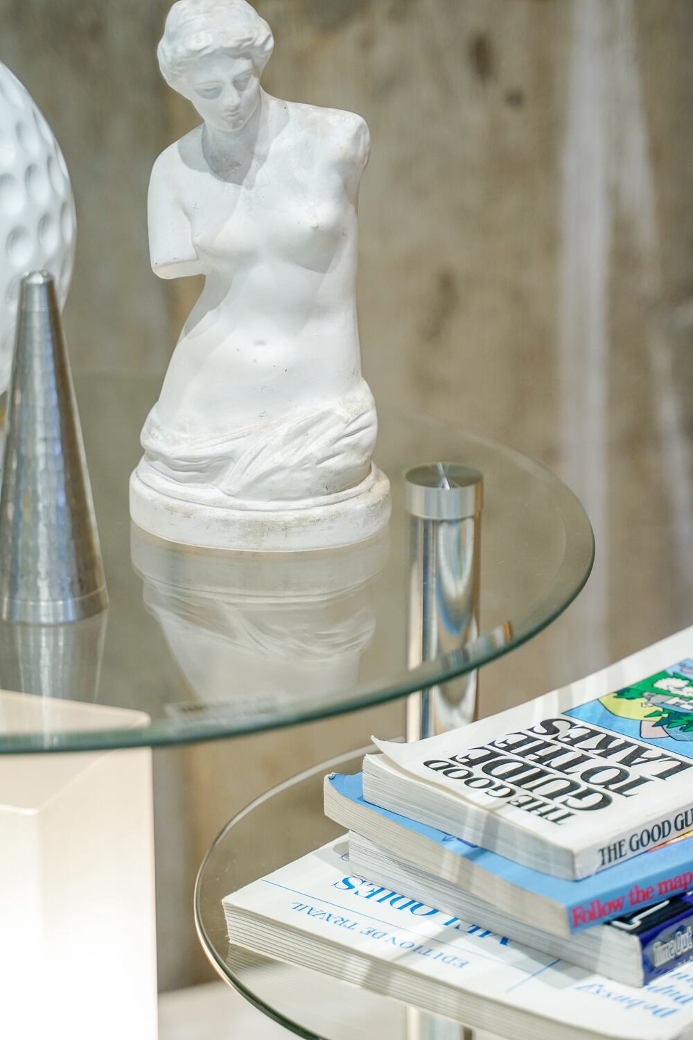 サイドテーブルにしてもよし、飾り棚にしてもよし。飾るものがどれだけポップでも受け入れてくれそうです◎