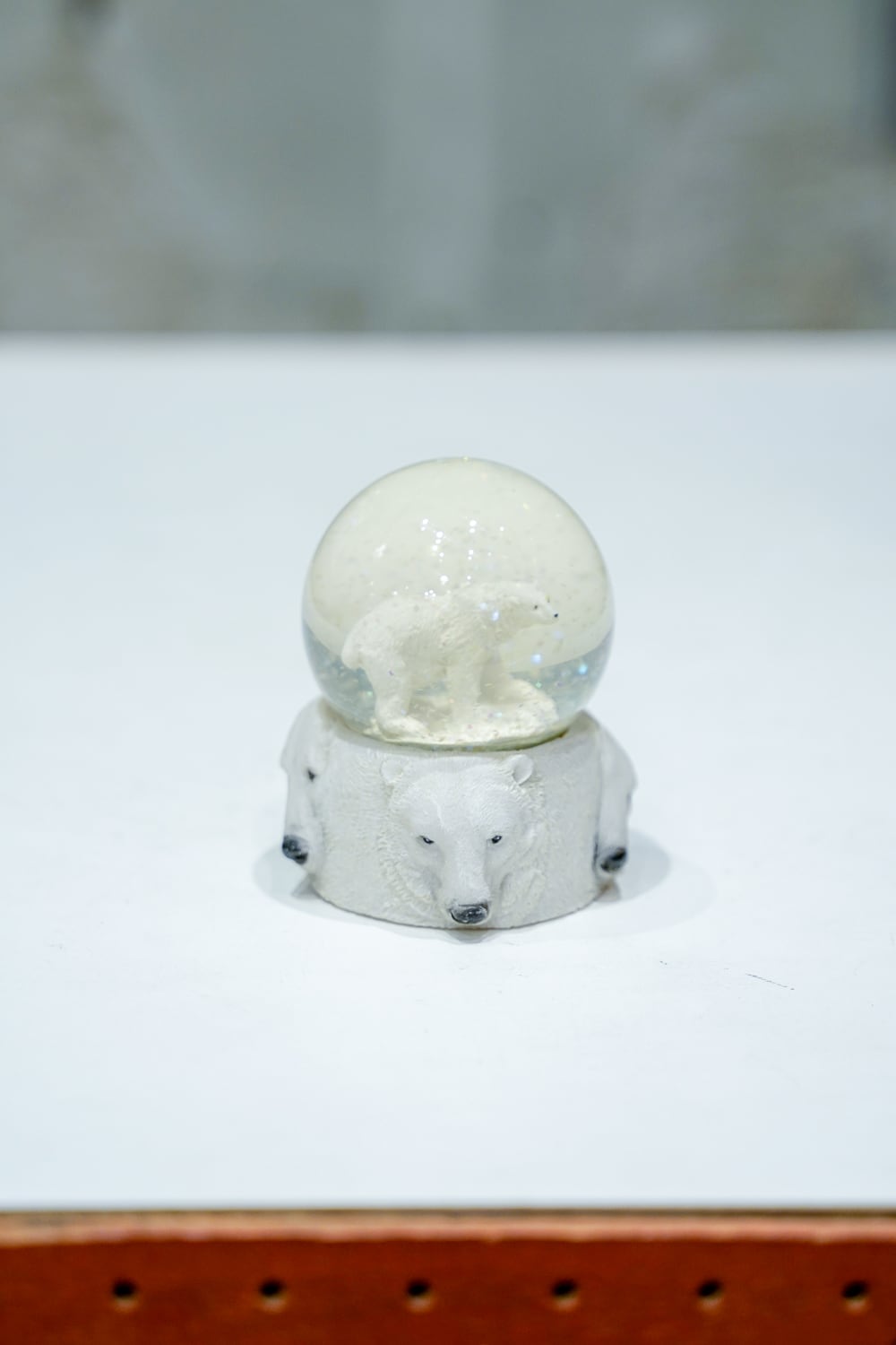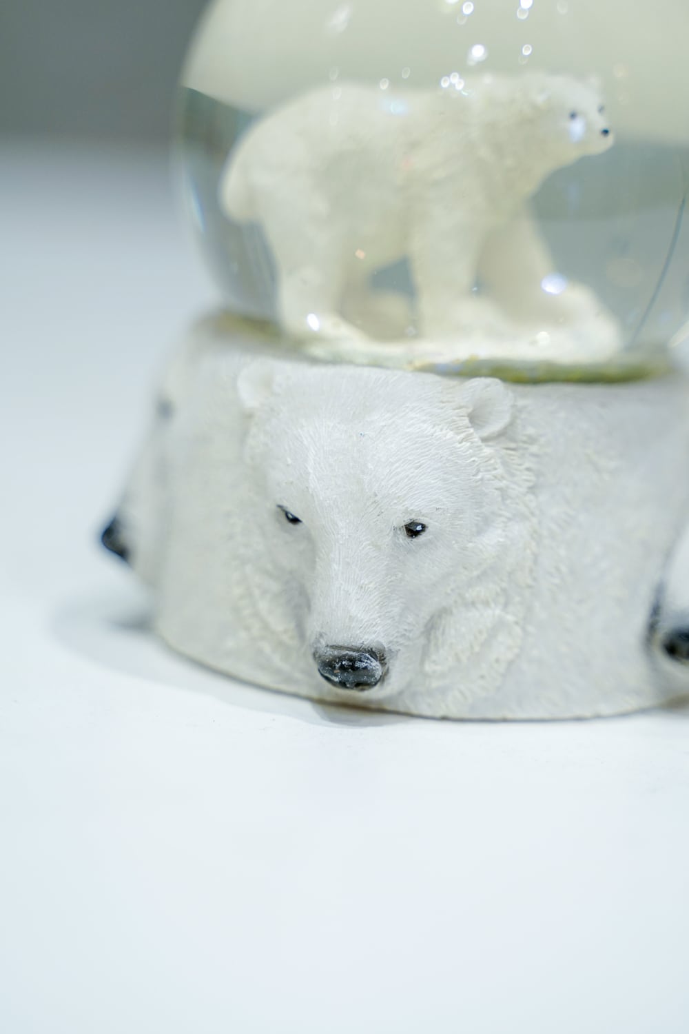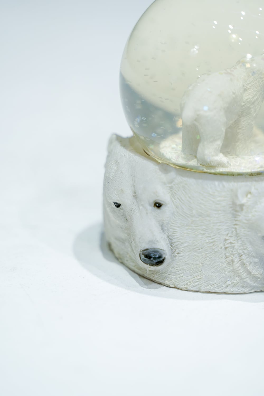 しろくまのスノードーム、やはりドーム内に目が行きますが注目して欲しいのは土台です。亡霊のようなシロクマたちが浮き出ています。(あるいはアメリカのラシュモア山のよう)