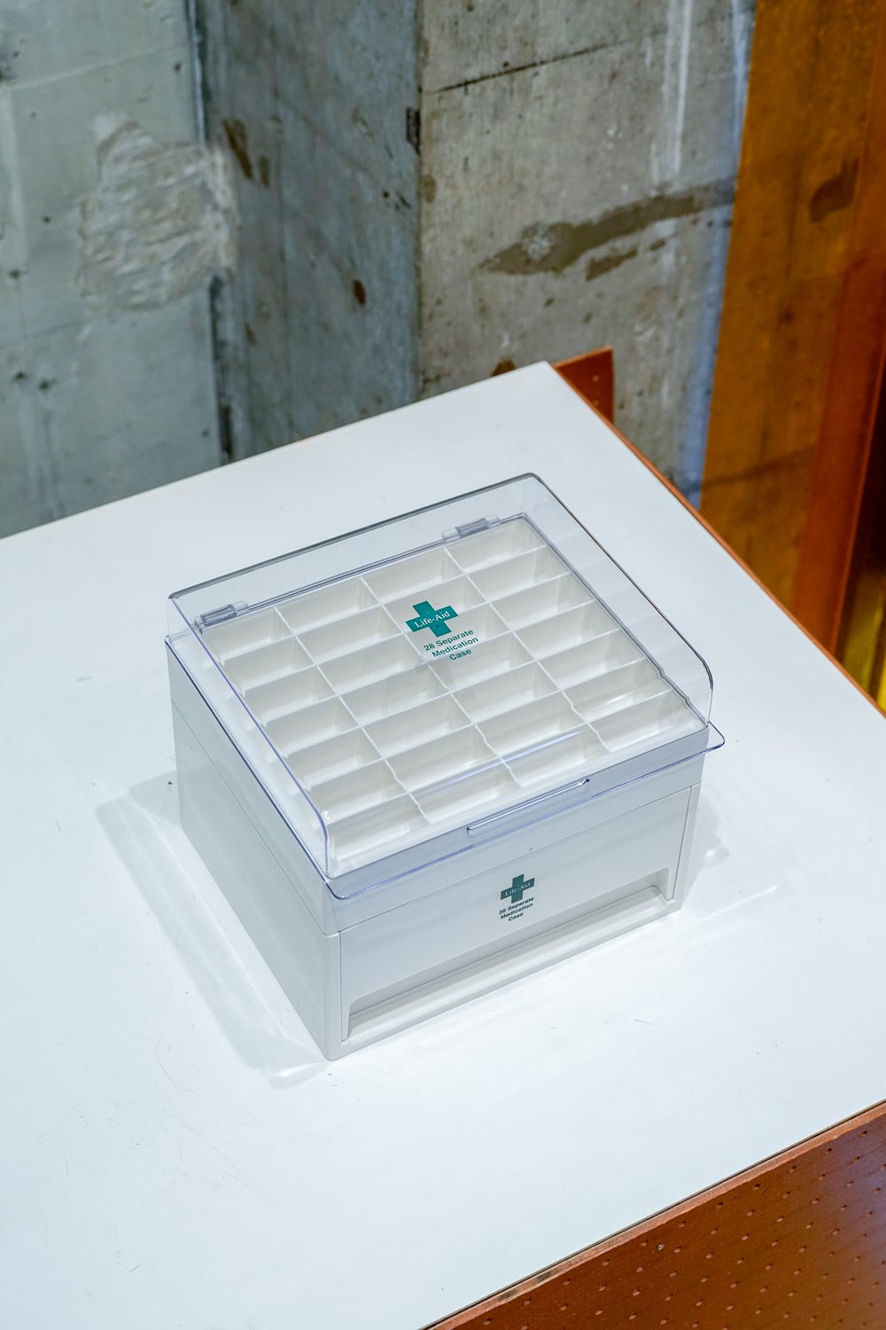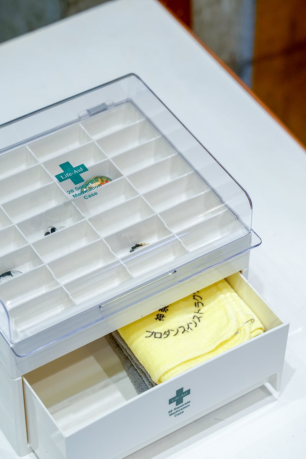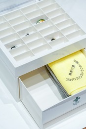 バッチリ薬用ではありますが、やはり用途は自由。上部はアクセサリー入れ、下部の引出しにはハンカチとかをいれておくと良い感じにまとまりそう。上部の透明の蓋を開けることに喜びを感じました(?)