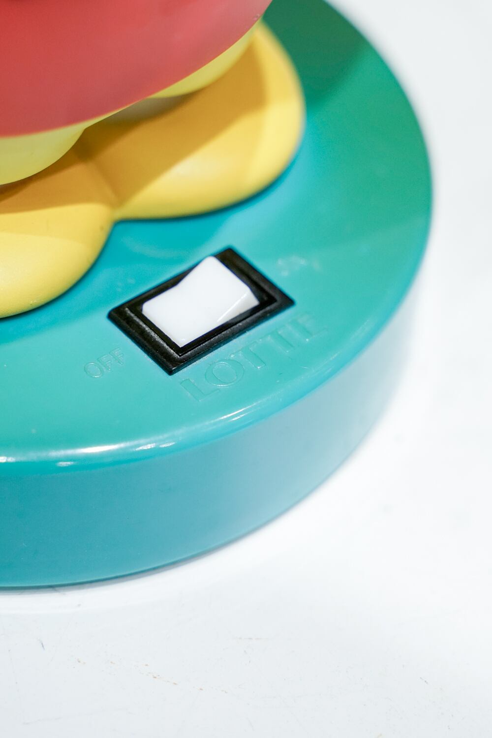 本体は貯金箱によくある感じの樹脂の素材感。ほっぺプニっとしそうですが、固めです。そして頭が360度まわります….