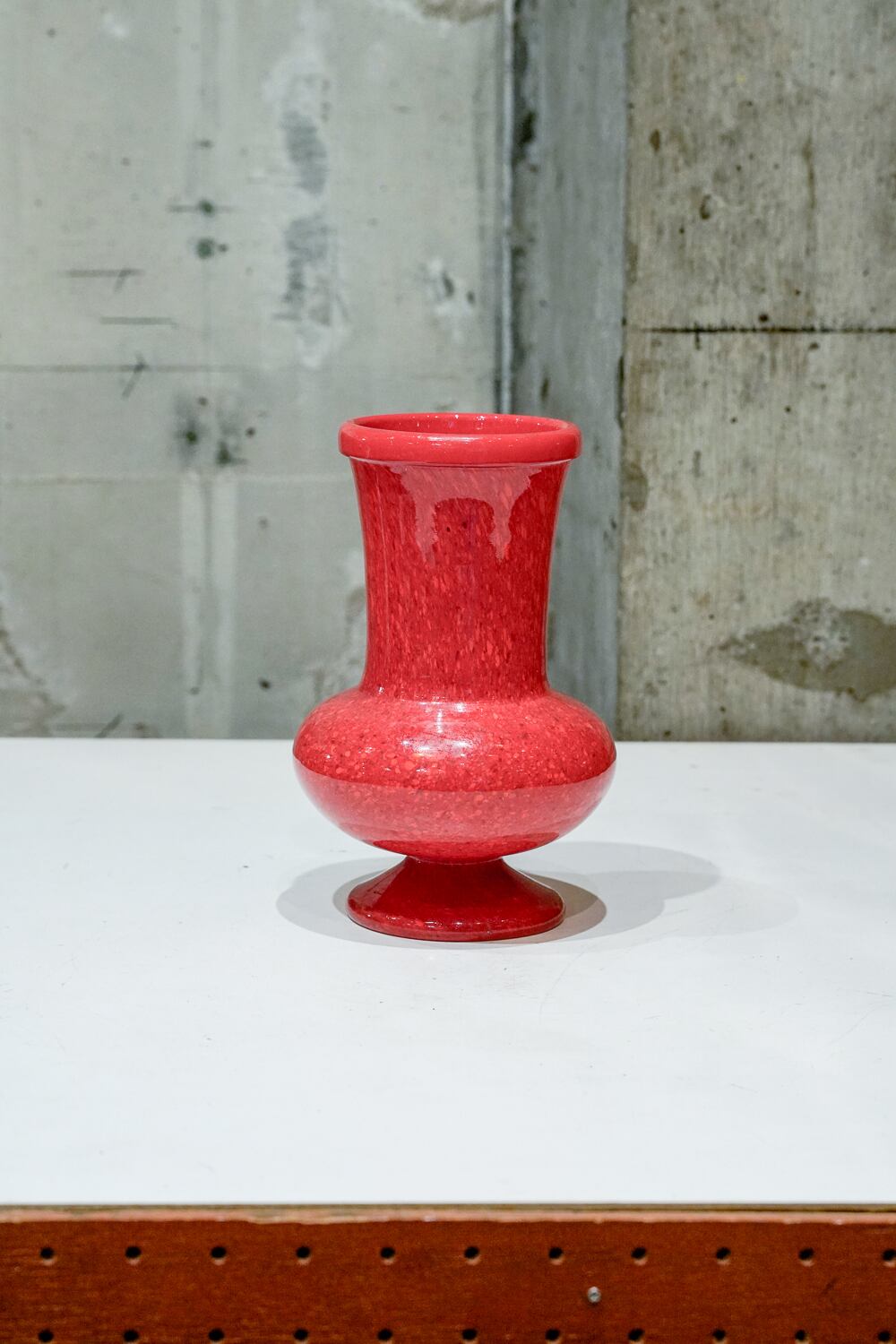石目調の赤いガラス製花器です。