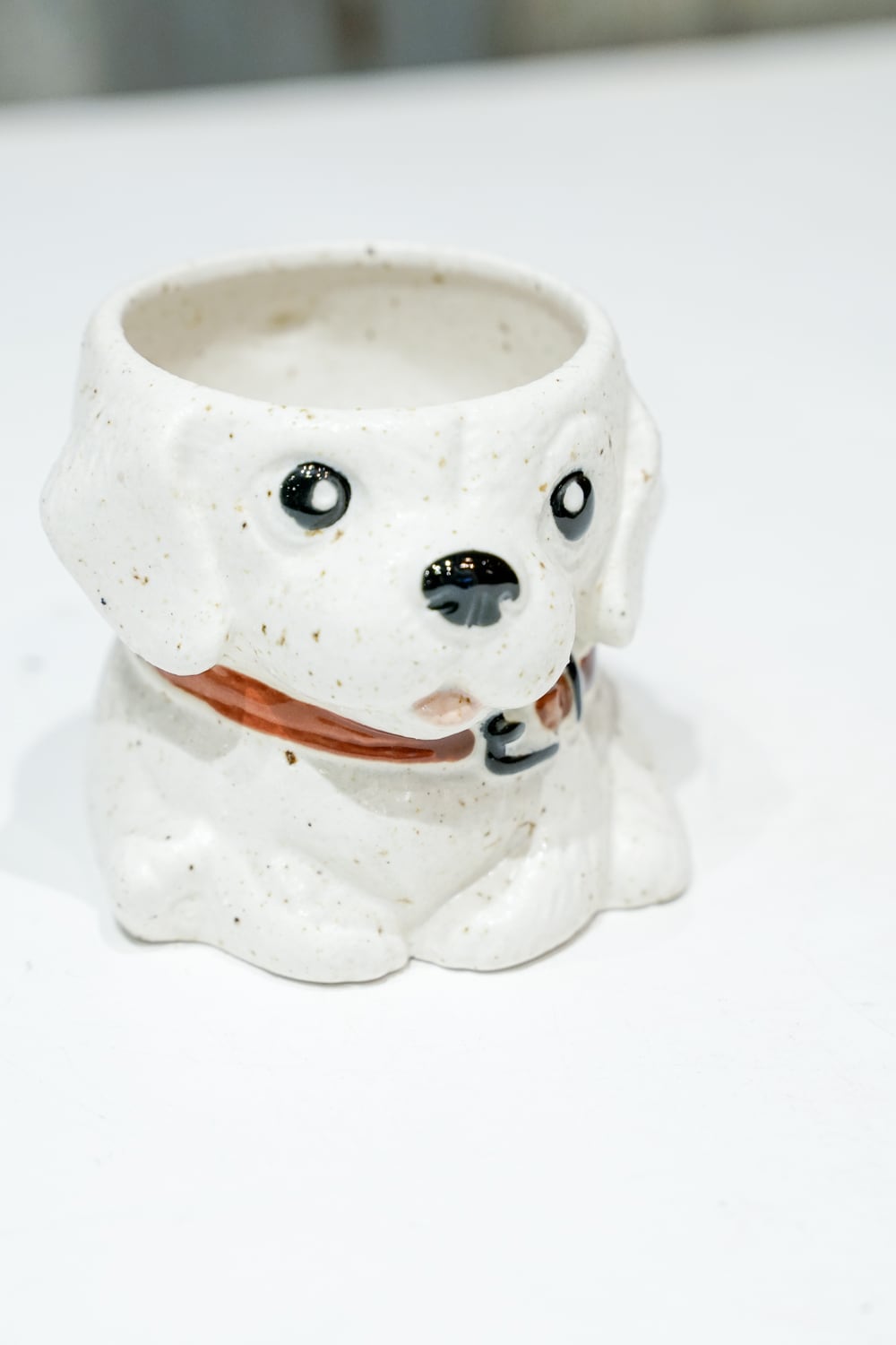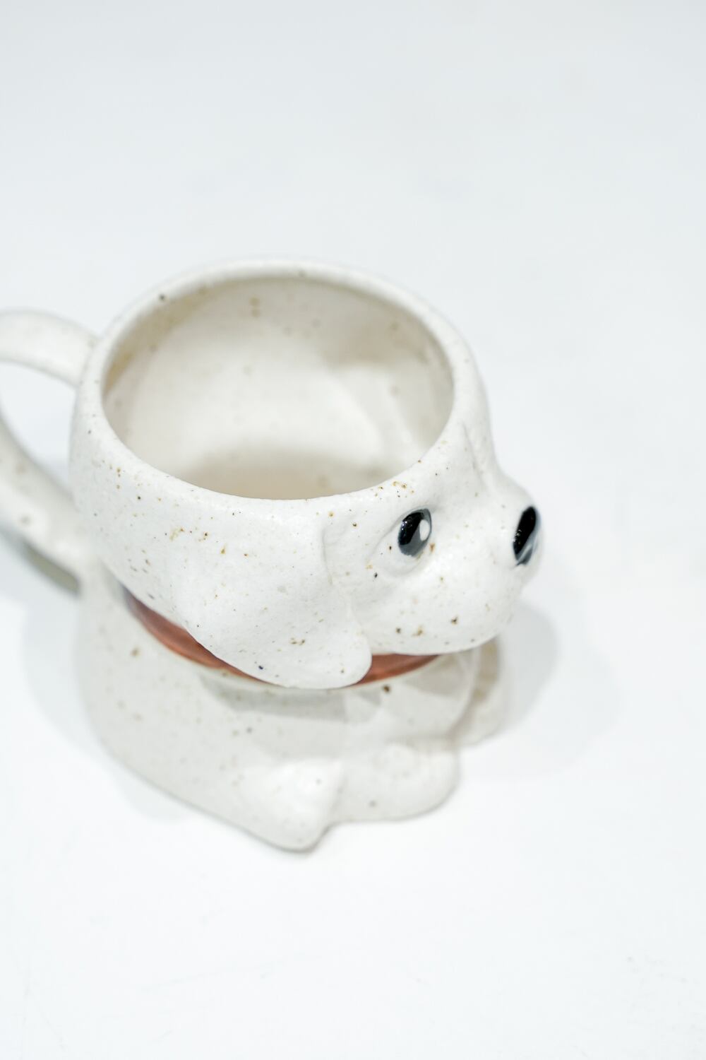 つぶらな瞳のわんちゃんの陶器製マグカップ。
