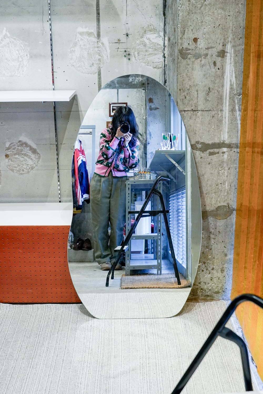 でっかいミラーの板をくり抜いたみたいな姿見です。枠も何もなく、厚みもたった5mm。宅急便とかで送るのめっちゃ怖いやつです。(家財便で送れます)