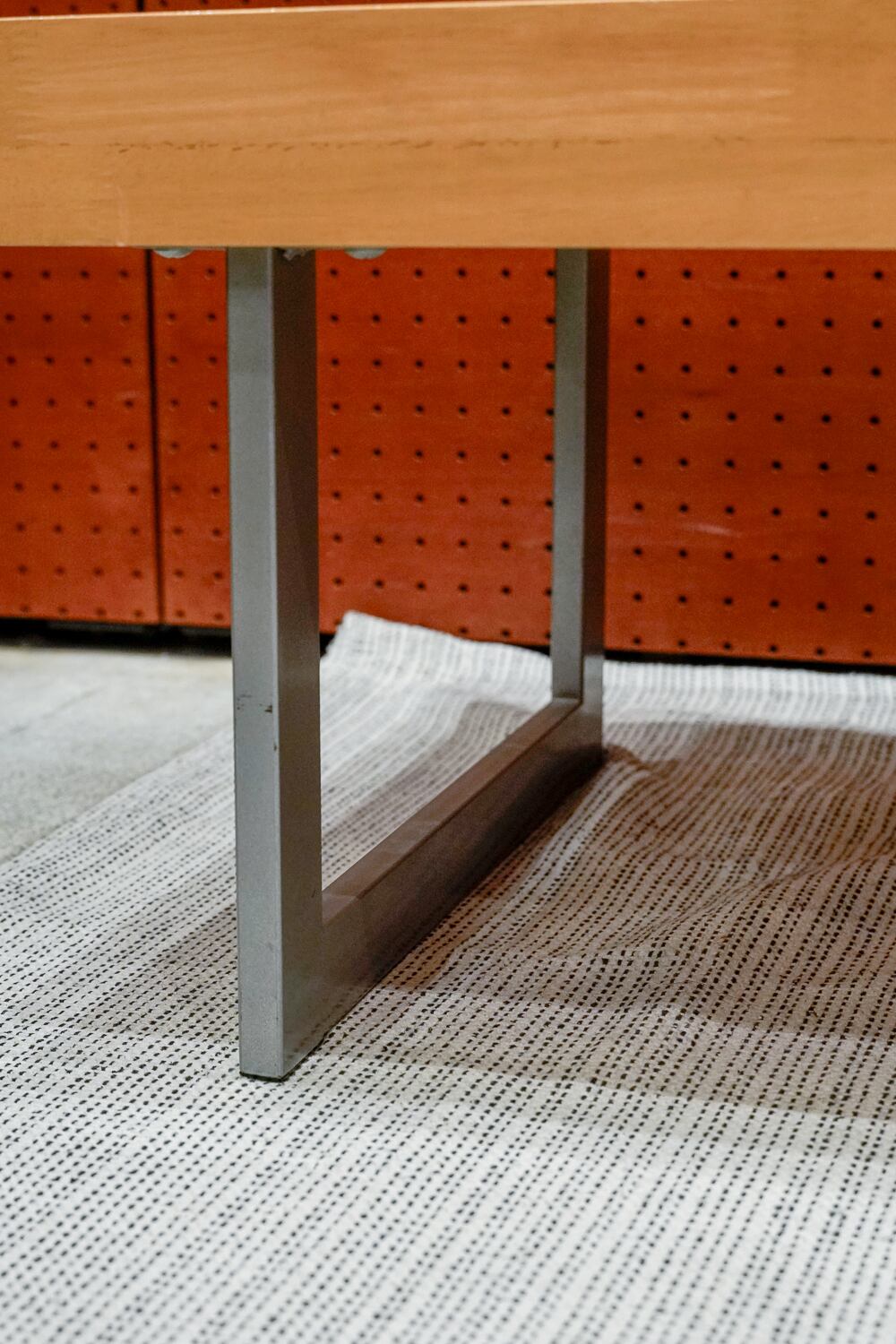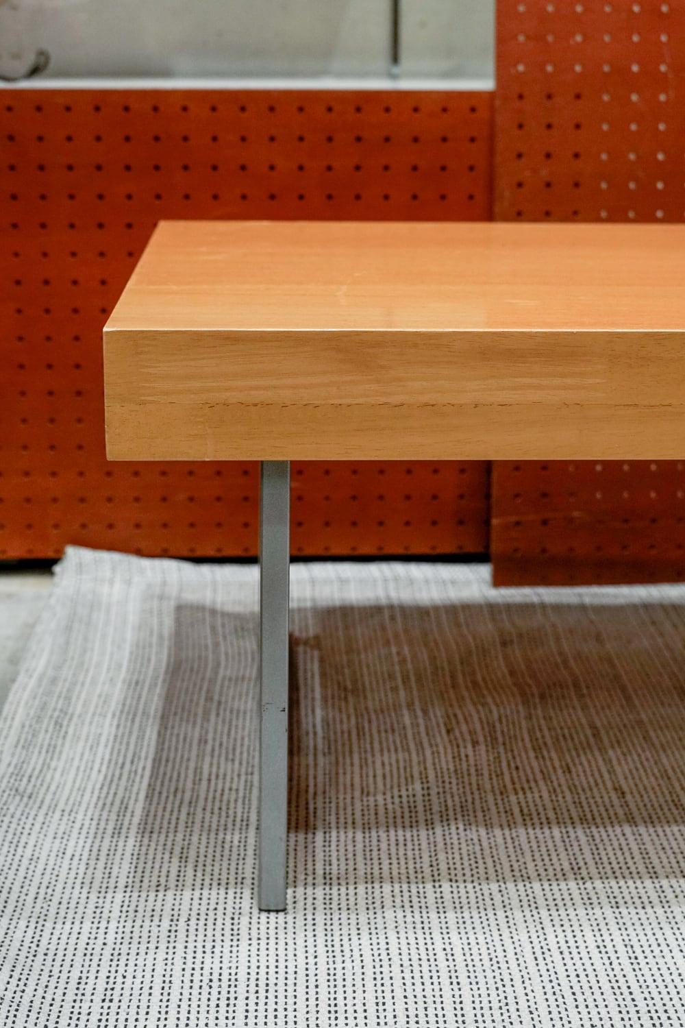 厚みのある天板とツルツル具合、四角いシルバーの脚。これはテーブルなのかベンチなのか…正解はあなたに委ねられています。テレビ台もいけますね。
