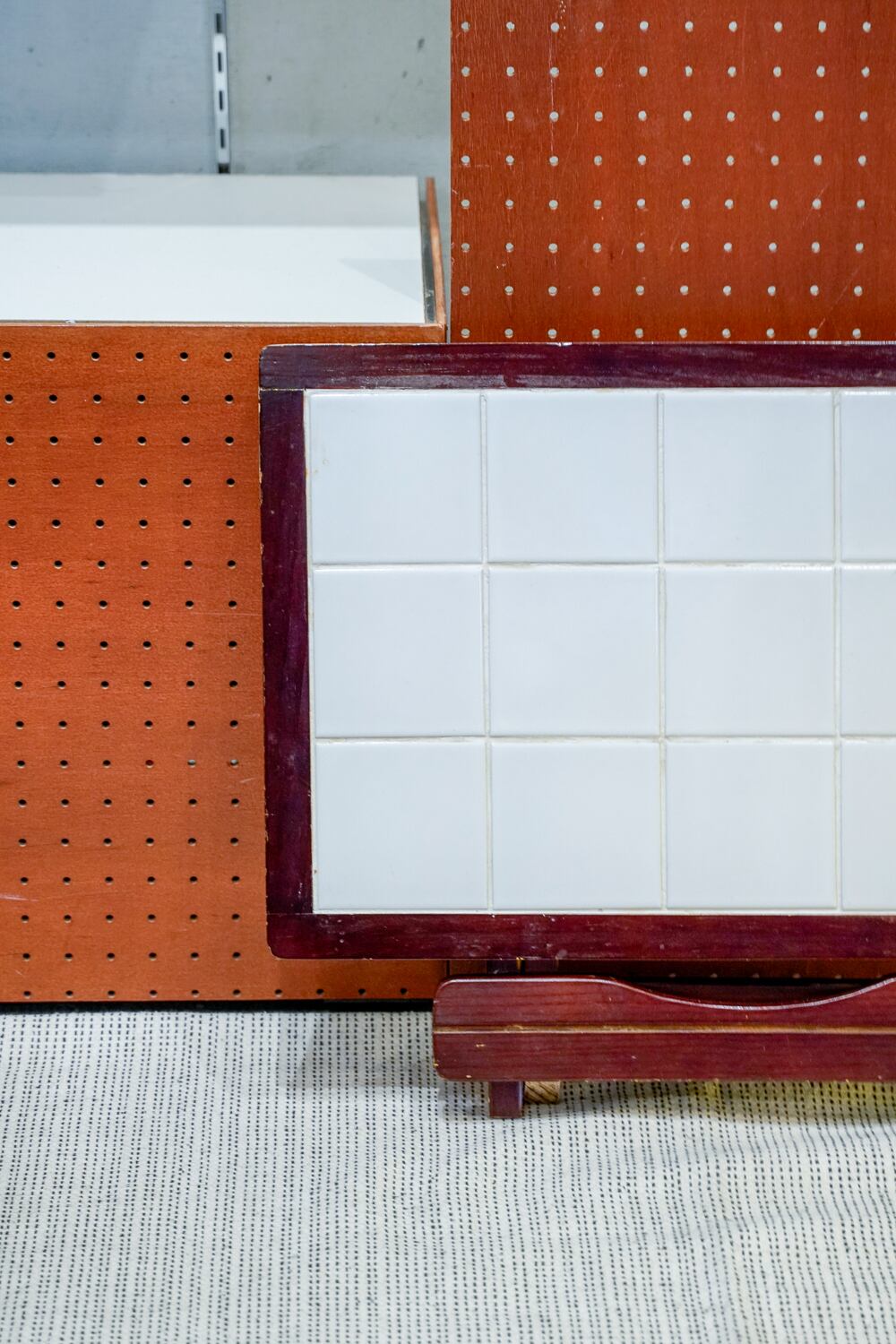 天板にタイルが貼られている小ぶりなテーブルです。カントリーっぽい雰囲気。カントリーなテーブル…どうぶつの森を思い出しますね。