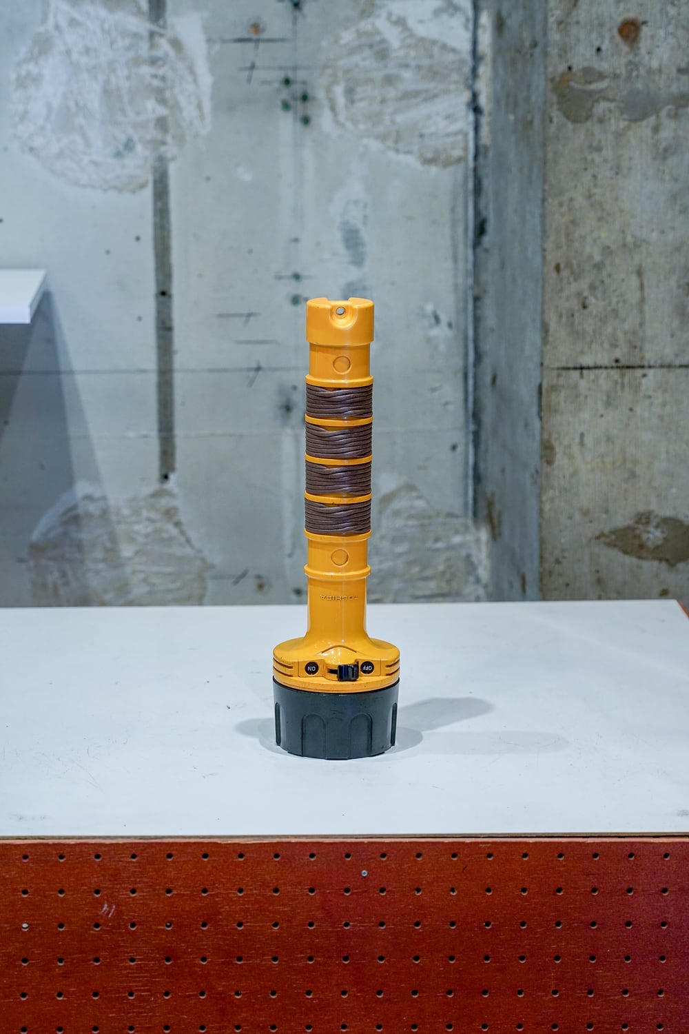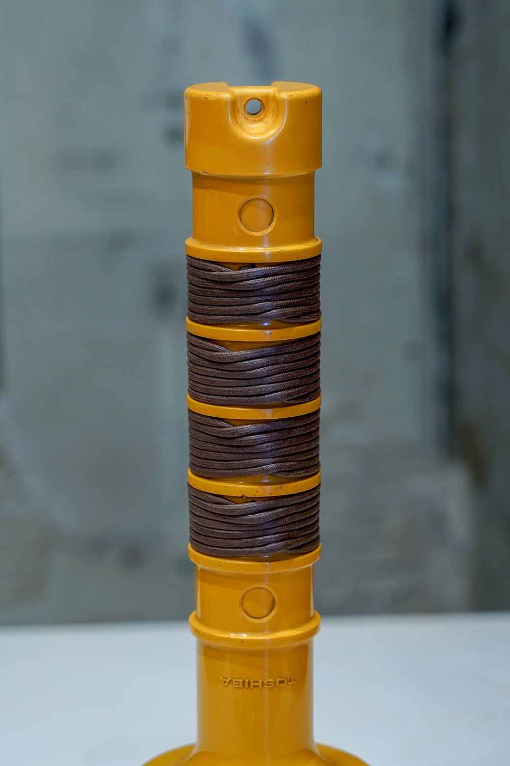 そんな無機質な物体に異素材を取り入れてみたらどう見えるのかな?と気になり、持ち手にワックスコードを巻いてみました。少しなんとなく握りたくなるような、全体の雰囲気は少し変わったように見えます。