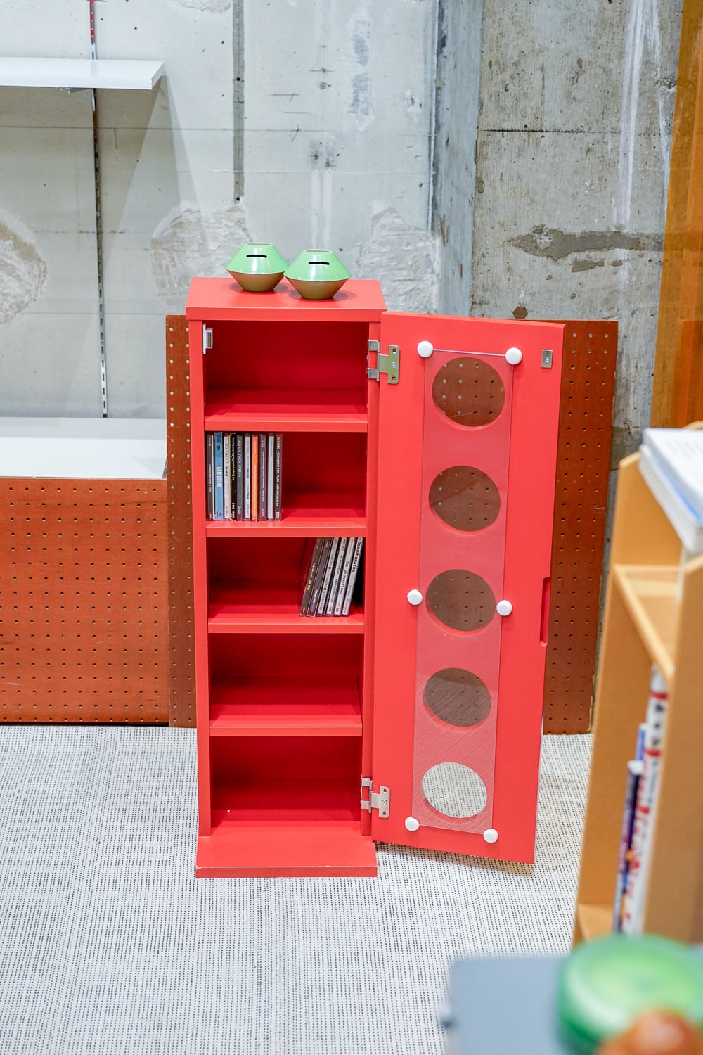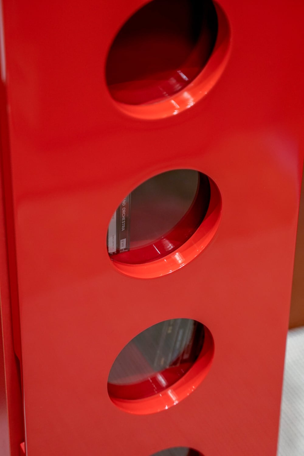 ツヤっとしたCD棚、過去色々なパターンを見てきましたが今回は丸窓タイプ。