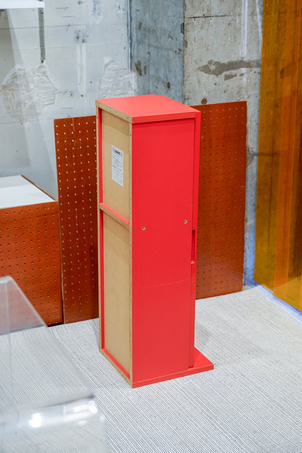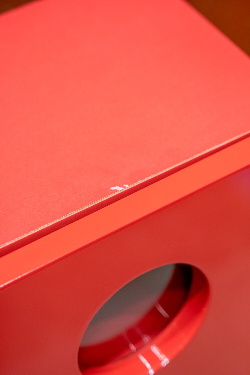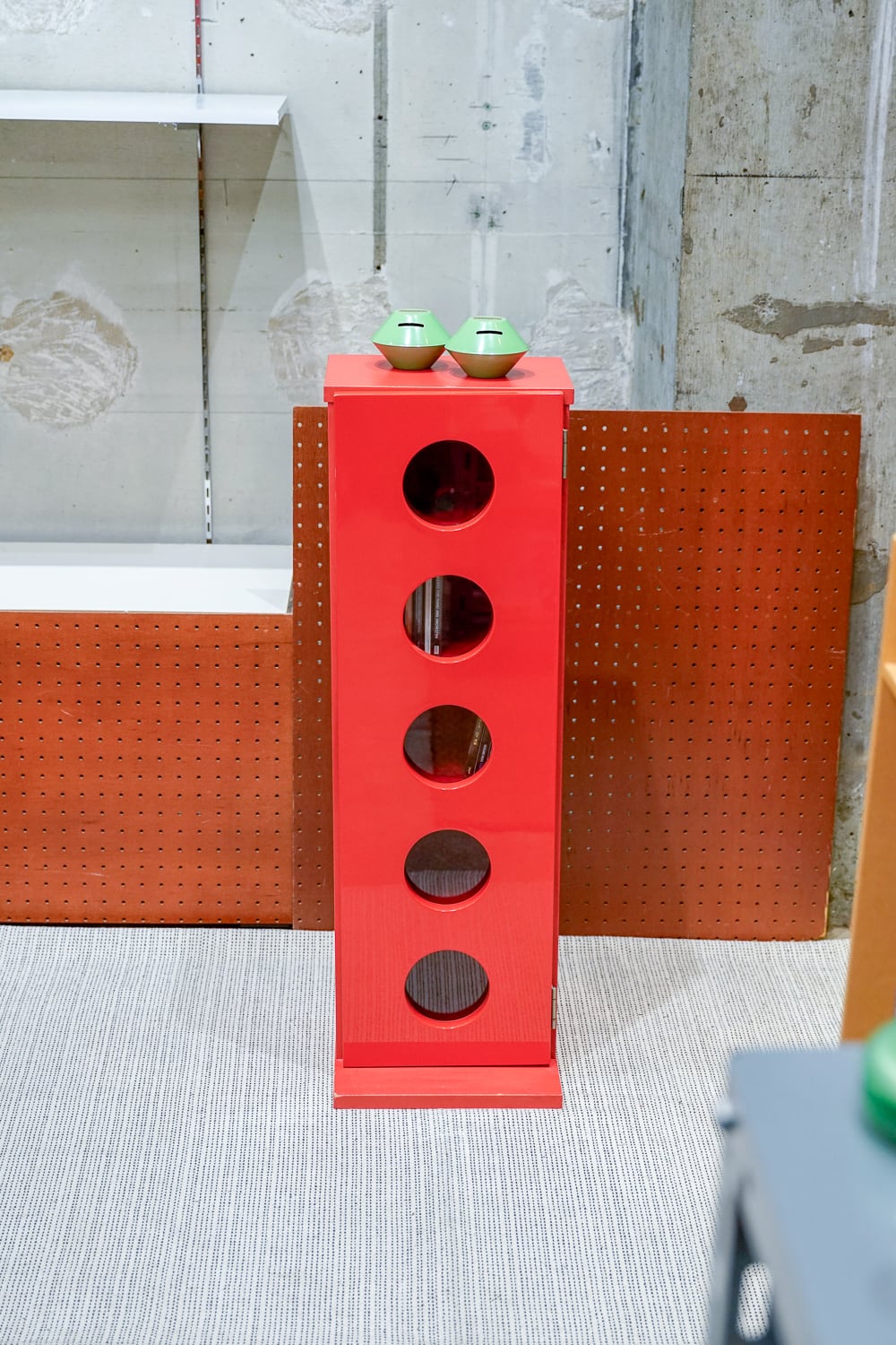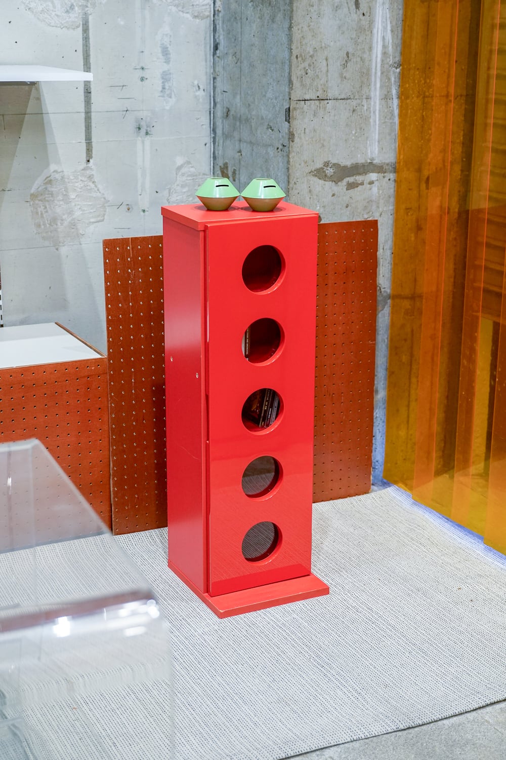 鮮烈な赤に、丸窓のデザインはとてもアイコニック。こういう強い見た目のものには意外と強いものを合わせた方が馴染むかも・・・と思っています。