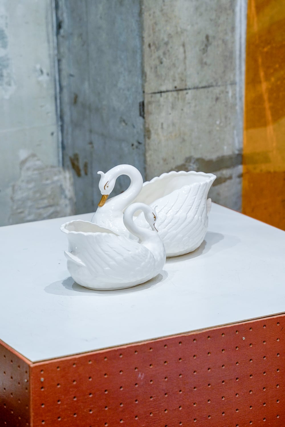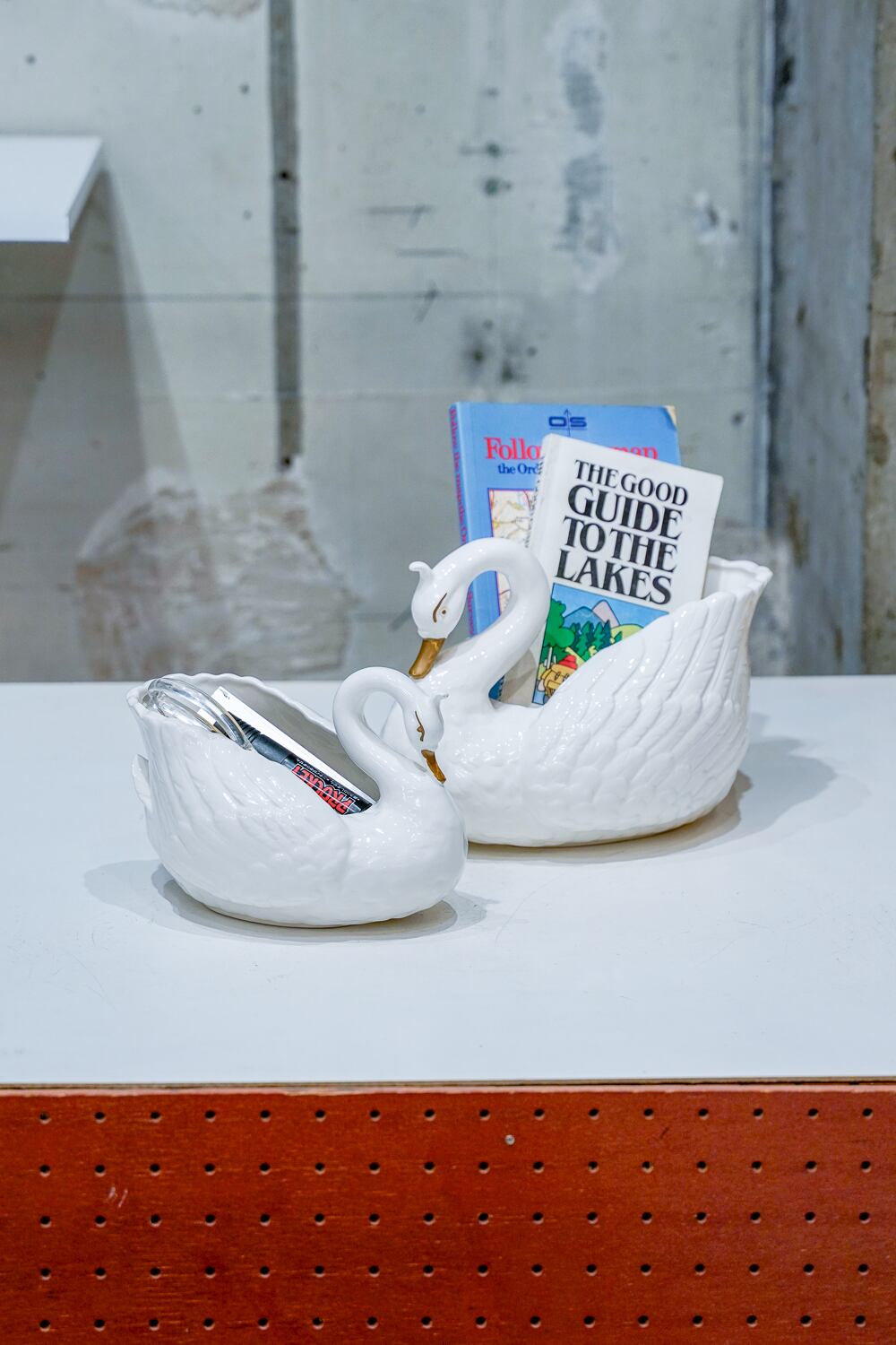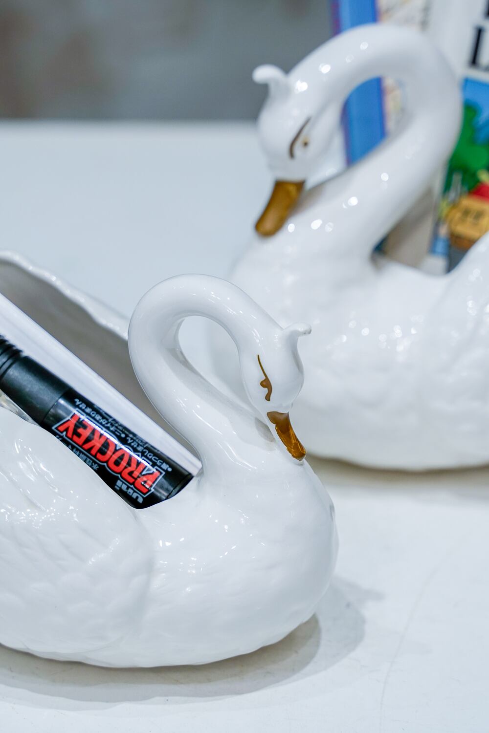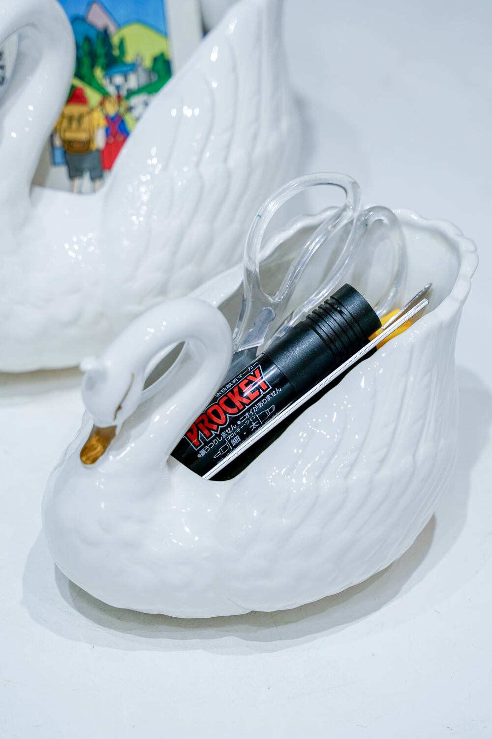 お花を生けてもいいし、リモコンさしてもいいし、文具をガサッと入れてもよし。なんでも白鳥さんが受けとめてくれます。