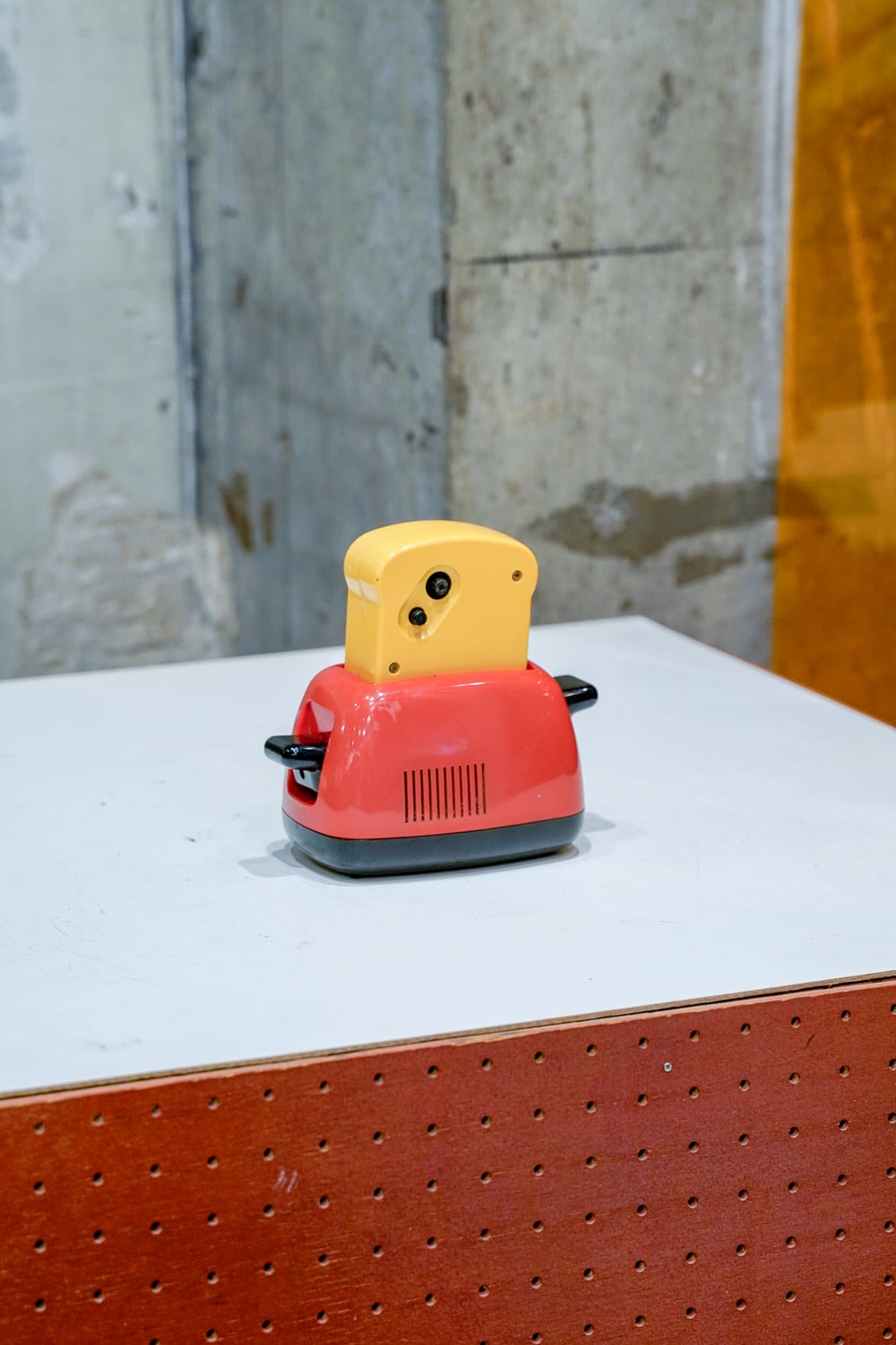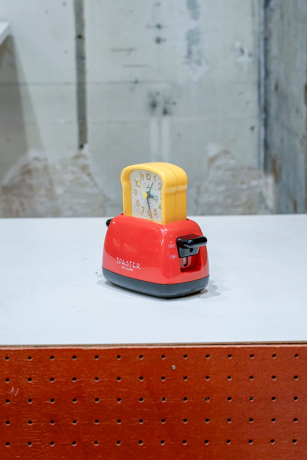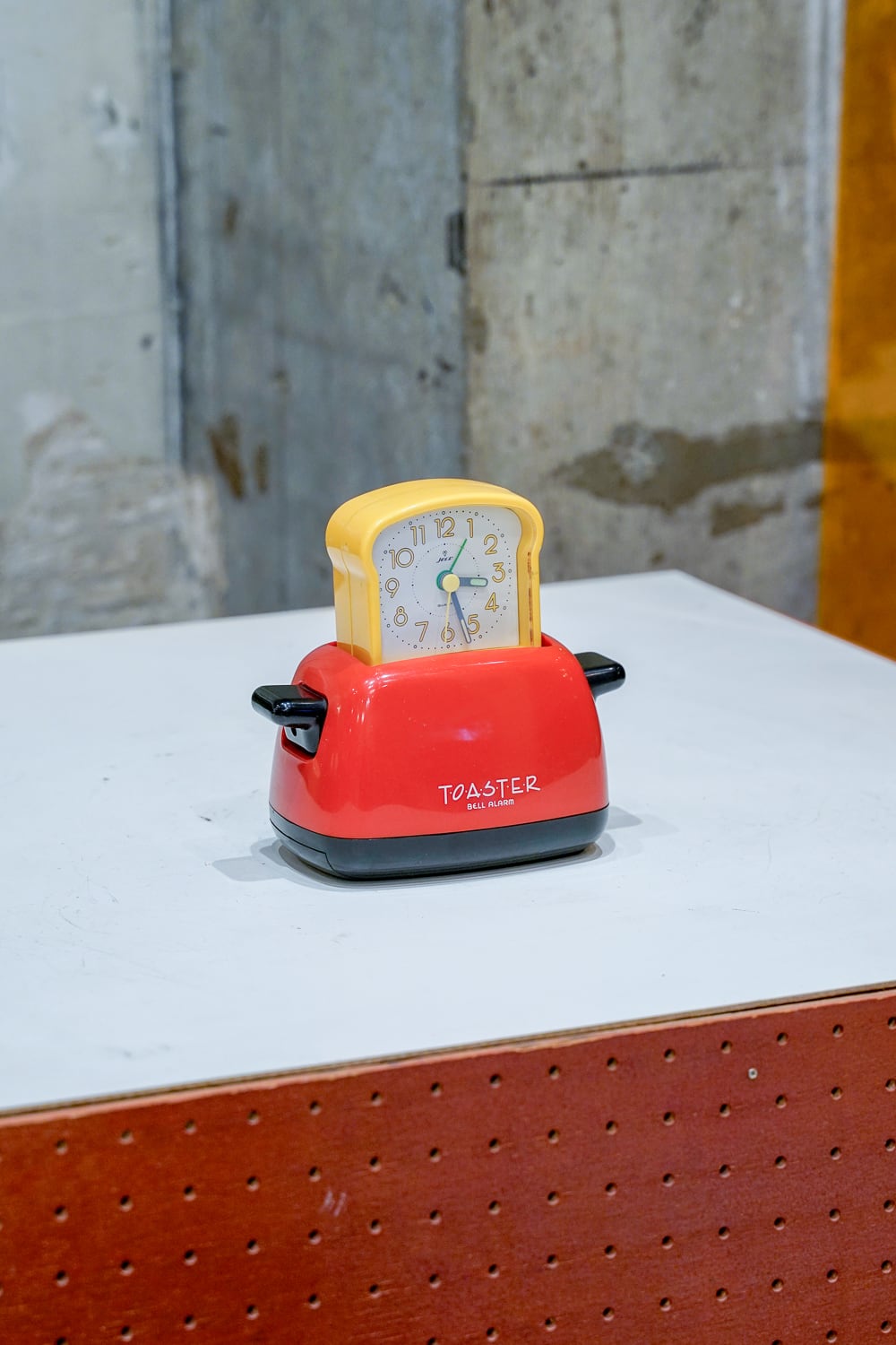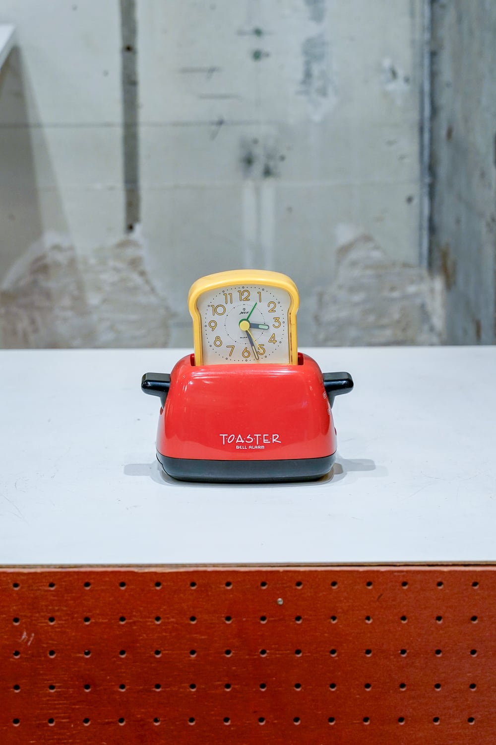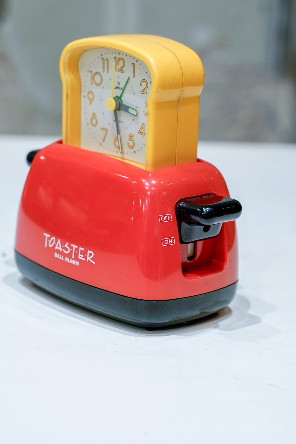 トースターに食パンが入っている構造の目覚まし時計。朝はパンが焼かれるというイメージからの形状なのでしょうか。そのためにかなり凝った作りをしています。